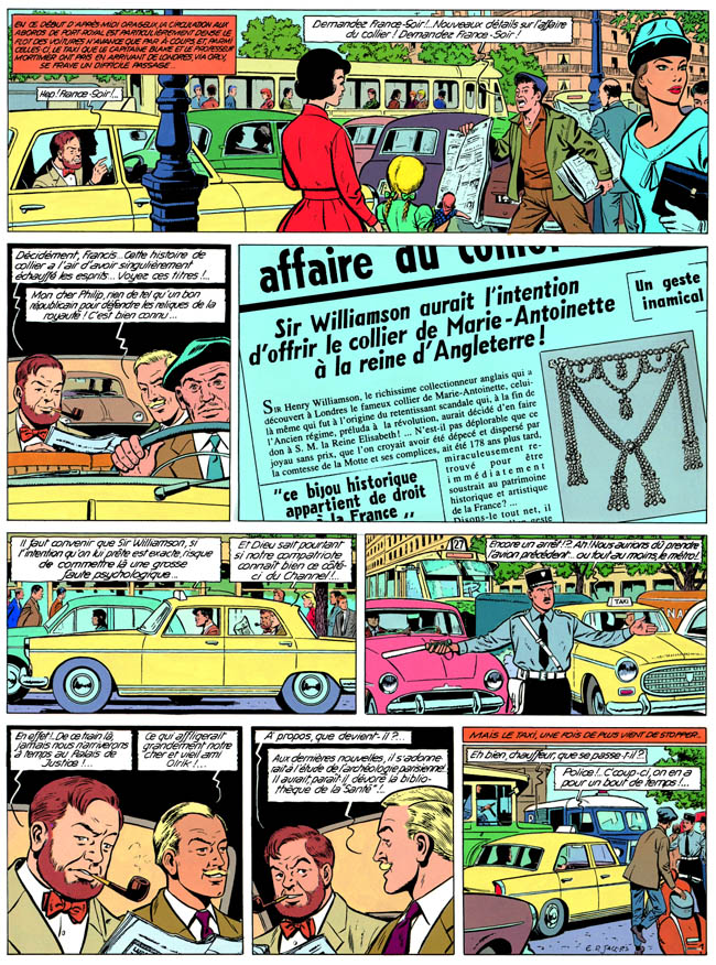 Olrik qui défraye la chronique des faits divers et se transforme tour à tour en passe muraille et en gentleman cambrioleur, voilà qui ne laisse pas d’étonner Blake et Mortimer ! Ces derniers se sont rendus à Paris pour une confrontation avec leur vieil ennemi au Palais de Justice. Mais le colonel, par un magistral tour de passe-passe et l’utilisation de complice extérieur, réussi à fausser compagnie à ses geôliers avant d’arriver au Palais. L’histoire ferait presque sourire nos deux Anglais, si le colonel ne les mettait au défi de l’arrêter avant qu’il ne commette quelque forfait.