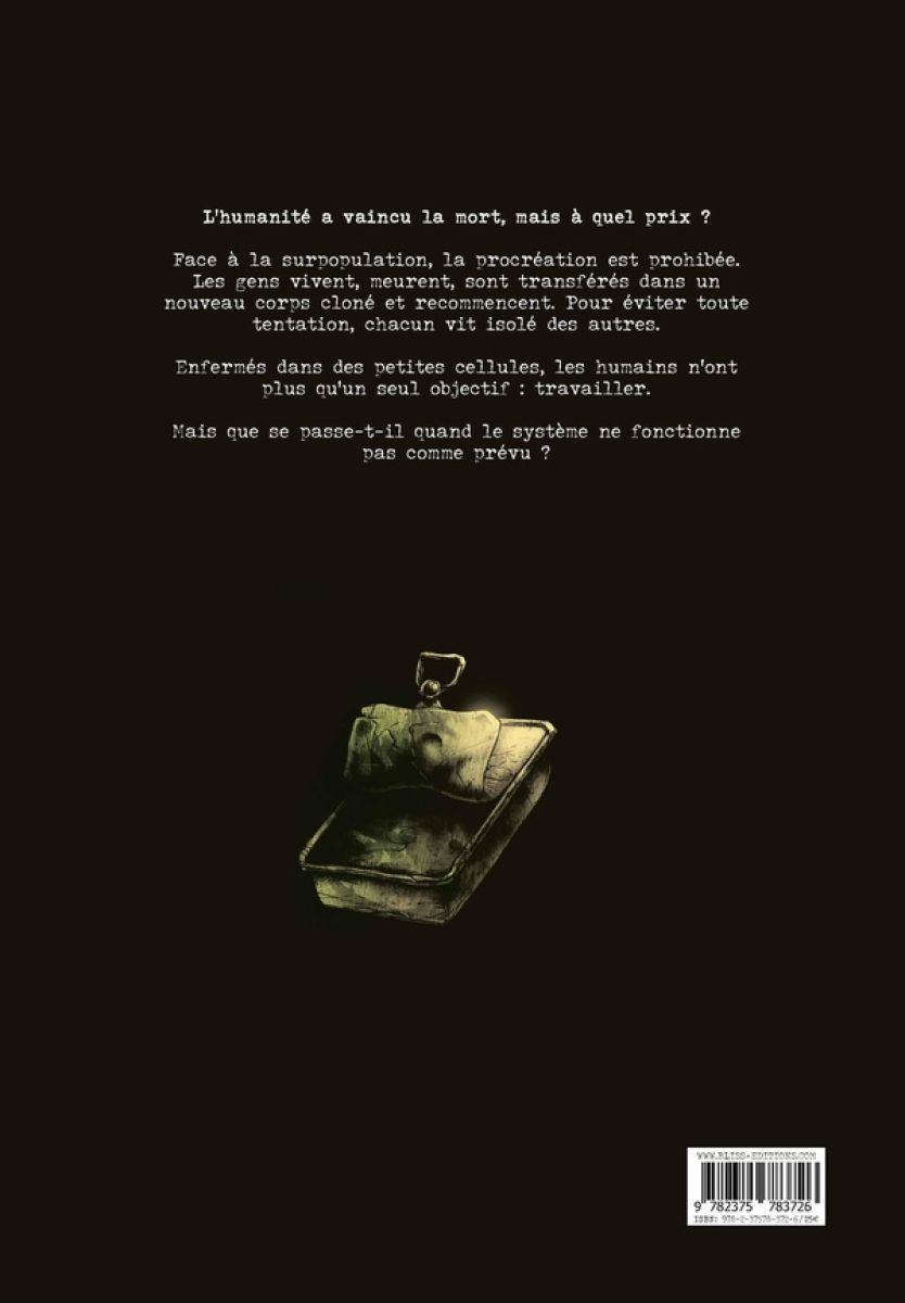 L’humanité a vaincu la mort, mais à quel prix ? Face à la surpopulation, la procréation est prohibée. Les gens vivent, meurent, sont transférés dans un nouveau corps cloné et recommencent. Pour éviter toute tentation, chacun vit isolé des autres. Enfermés dans des petites cellules, les humains n’ont plus qu’un seul objectif : travailler. Mais que se passe-t-il quand le système ne fonctionne pas comme prévu ?