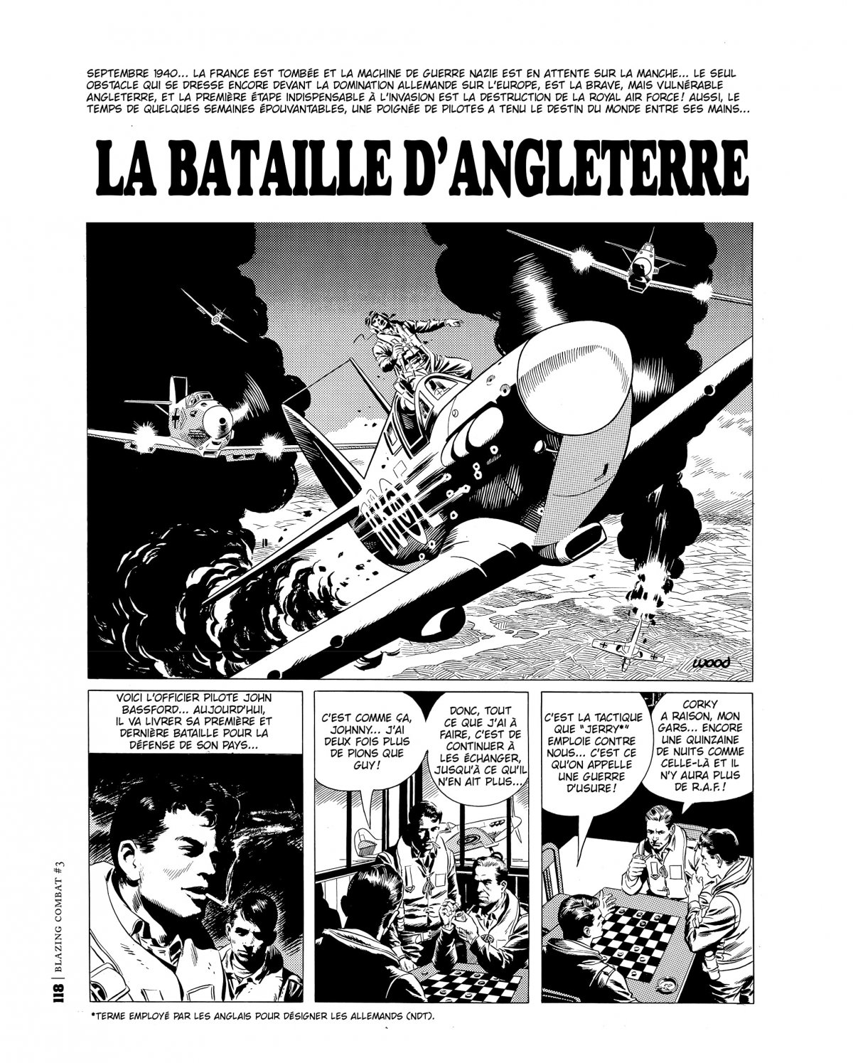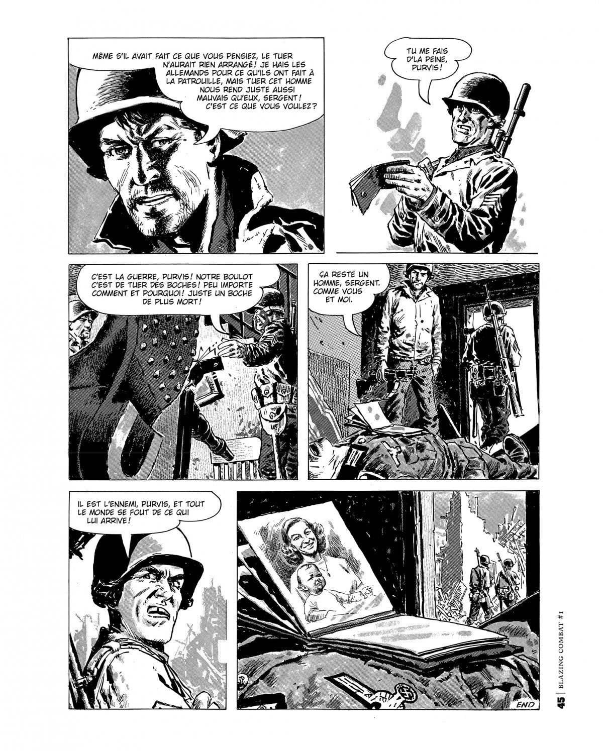 Écrit par Archie Goodwin et illustré par des figures telles que Frank Frazetta, Wally Wood, John Severin, Alex Toth, Al Williamson, Russ Heath, Reed Crandall ou Gene Colan, Blazing Combat était à l’origine publié par un éditeur indépendant, James Warren, en 1965 et 1966. Les histoires de Goodwin sont le reflet de la réalité vécue par les hommes et des coûts de la guerre, plutôt qu’une nouvelle exploitation des clichés du genre. Il s’agit sans doute là des meilleurs récits de guerre en BD jamais publiés