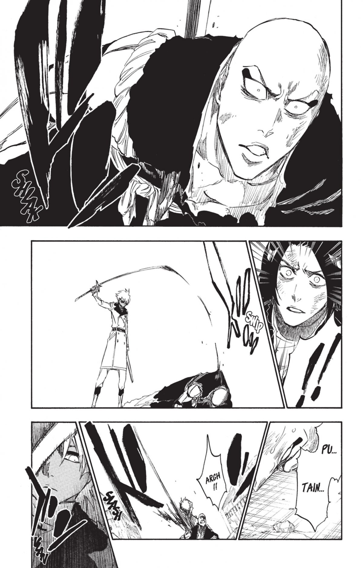 Changé en pantin par Gigi, Hitsugaya attaque ses camarades shinigamis. Mais quand son regard vide se pose sur Mayuri, celui-ci a un sinistre sourire aux lèvres... Pendant ce temps, les soldats de la division Zéro, gardiens du palais royal, brandissent sans pitié leurs armes afin de tuer Yhwach, qui y a pénétré !