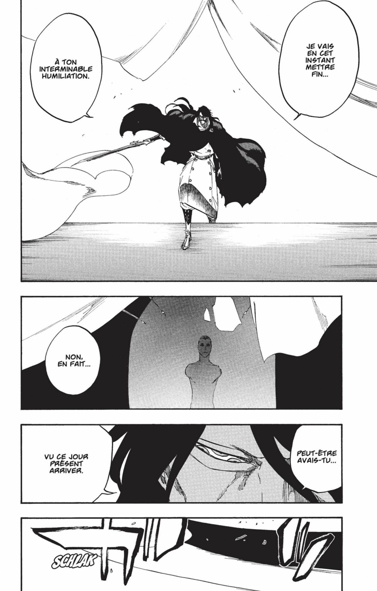 Avec la mort du roi spirituel, le monde commence à s’écrouler... Pour faire face à cette crise au Seireitei, Ukitake avait déclenché le pouvoir d’un mystérieux rituel, le Kamikake ! Pendant ce temps, Kyôraku avance dans des ténèbres d’un noir absolu. Il est venu y rencontrer une certaine personne... Mais avec quelles intentions !
