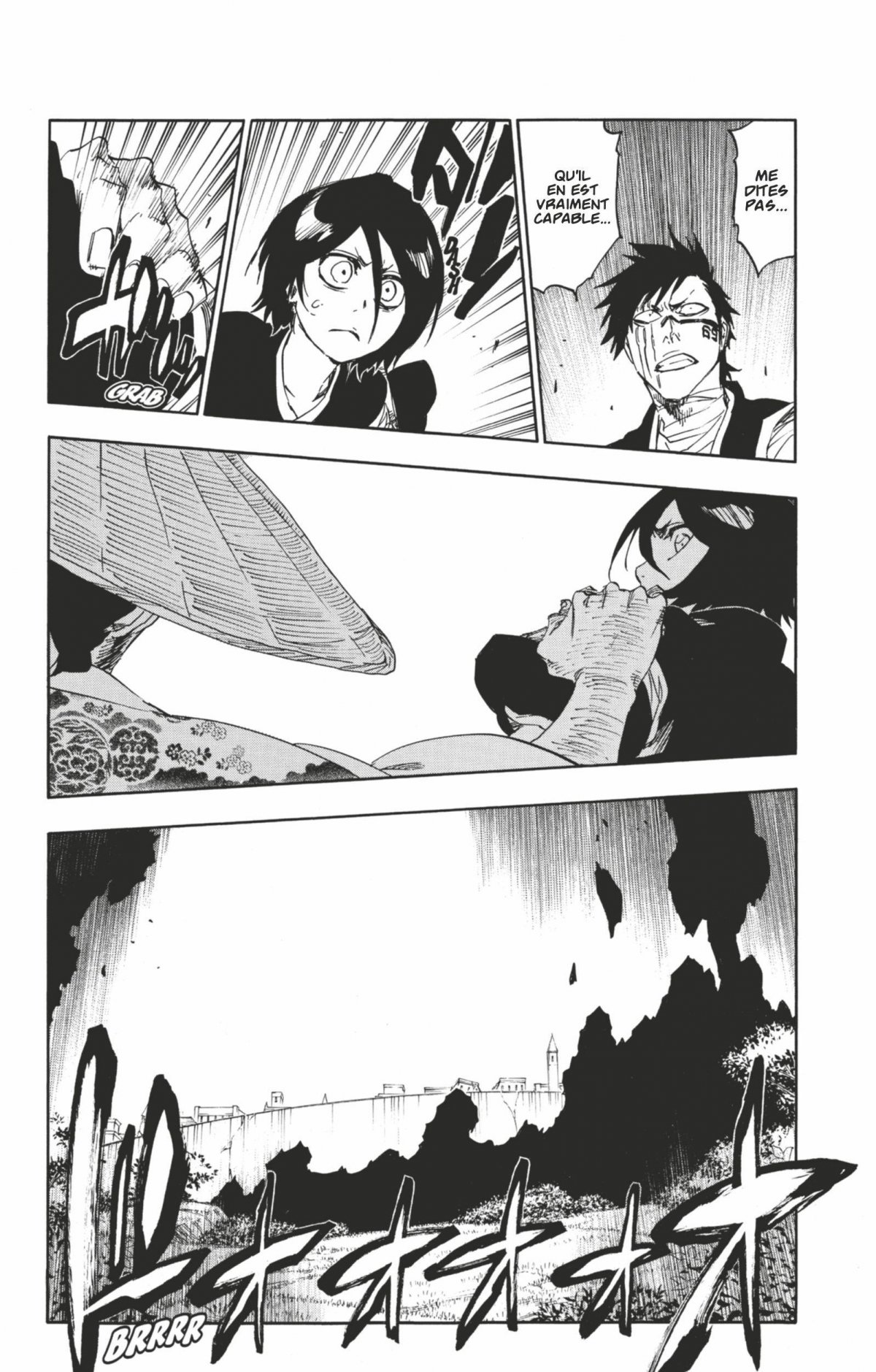 Alors que Rukia et les autres ne sont pas encore remis du choc de l’apparition d’Aizen, voilà que les Stern Ritter survivants se présentent devant eux ! Pendant ce temps Ichigo, qui a été éjecté du Palais Royal, est reparti pour y rejoindre Yhwach. Et en chemin, il fait de drôles de retrouvailles !