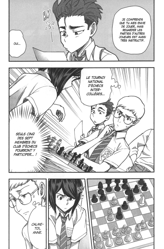 Suite à l’incident avec Caïssa, le niveau de Tom aux échecs a considérablement progressé. De retour à l’école, il retrouve Harmony, Laurent, Saori, mais aussi Anne, Marius et Zhang. Les sept membres du club d’échecs de l’International School of Shibuya doivent maintenant s’affronter afin de déterminer les cinq représentants de l’école qui participeront aux championnats inter-collèges de la région du Kantô. Face des adversaires redoutables à bien des égards, les nerfs de nos héros vont être mis à rude épreuve...Souvenirs, rivalité, retrouvailles inattendues... difficile de garder sa concentration ! La team ISS sera-t-elle assez solide pour s’en sortir ?