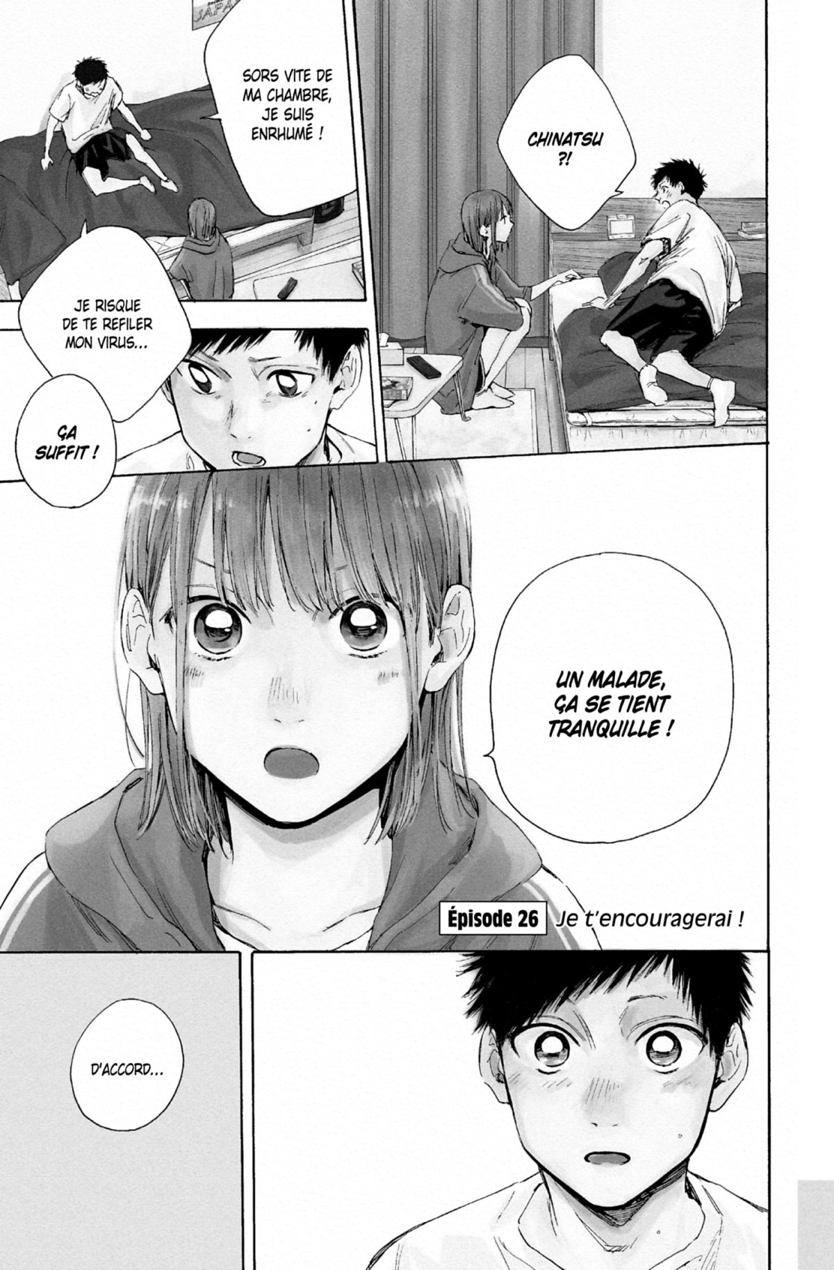 Alors que Chinatsu veille sur Taiki, ce dernier trébuche et les deux lycéens tombent l’un contre l’autre, ce qui installe une certaine gêne entre eux. De son côté, Hina prend son courage à deux mains pour inviter Taiki au feu d’artifice organisé pendant les vacances scolaires. L’été ne fait que commencer...