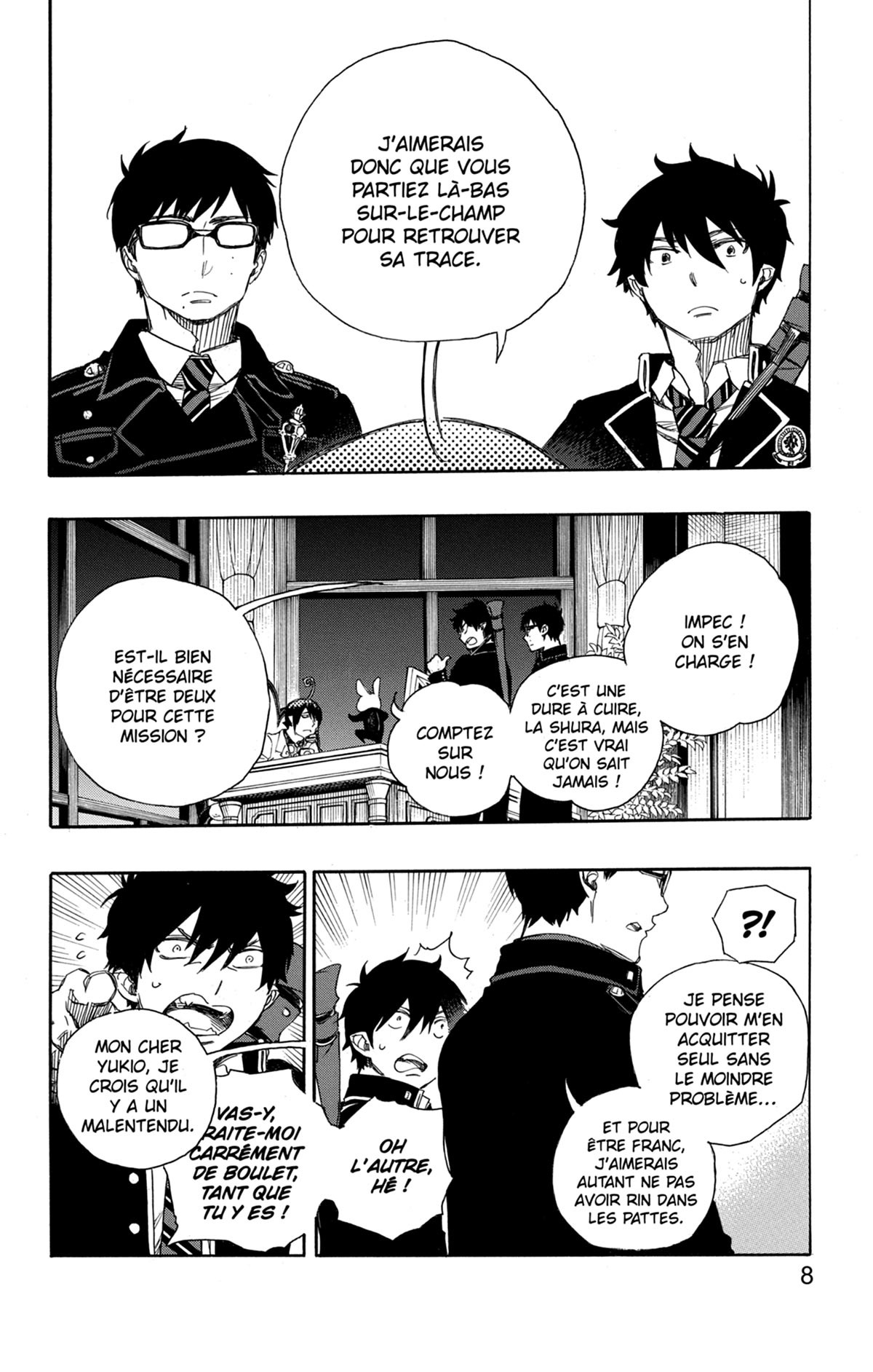 Convoqués par Méphisto, Rin et Yukio sont tous deux mandatés pour partir à la recherche de Shura, mystérieusement disparue. Direction la ville d’Aomori, aux abords d’un lac gelé, dernier endroit où elle a été localisée ! Si le voyage prend d’abord une allure de sympathique virée entre frangins, très vite, ils retrouvent la plantureuse exorciste en bien mauvaise posture ! Ils découvrent alors le sombre secret qu’elle dissimule depuis toujours...