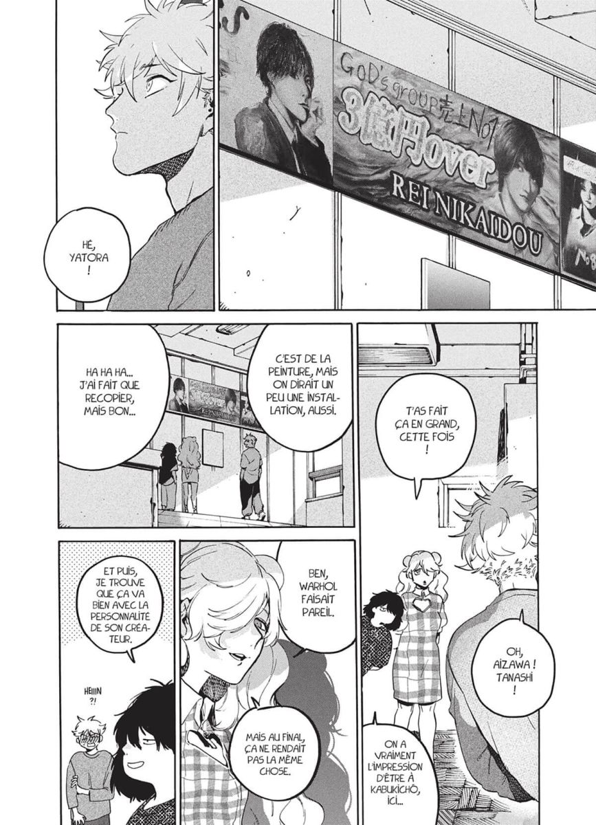 Pour son dernier projet de deuxième année sur le thème "Expo à deux", Yatora a choisi Andy Warhol comme partenaire. Afin de s’imprégner de son univers, le jeune étudiant décide de plonger dans le quartier de Kabukichô. Cette expérience a payé puisque son panneau publicitaire de clubs d’hôtes a remporté un franc succès et a renforcé son envie de faire de l’art son métier. Reste à savoir comment...