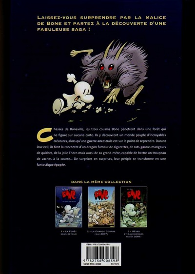 Forêt sans retour (La) est le volume 1 de la série Bone (Presses Aventure) par Jeff Smith, paru en 2006. Selon nos informations, il n'en existe qu'une seule édition, publiée par Presses Aventure.