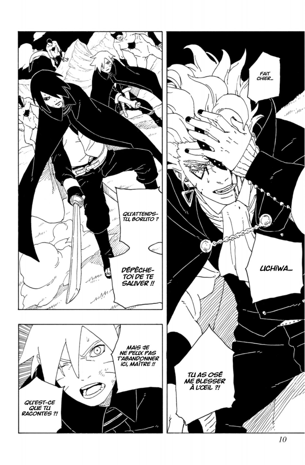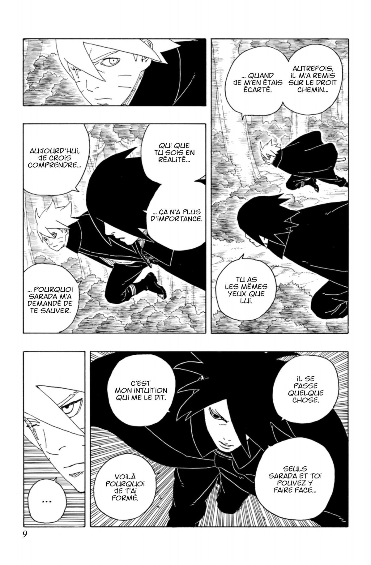 Trois ans se sont écoulés depuis le « grand changement » durant lequel la situation de Boruto et celle de Kawaki se sont inversées. Jûbi, que manipule Code, évolue vers un shinju doté d’une conscience, et le monde doit faire face à une nouvelle menace ! Quant à Sasuke, il a été, lui aussi, absorbé par un arbre... Boruto revient de nouveau au village, mais Mitsuki l’attaque brusquement...!