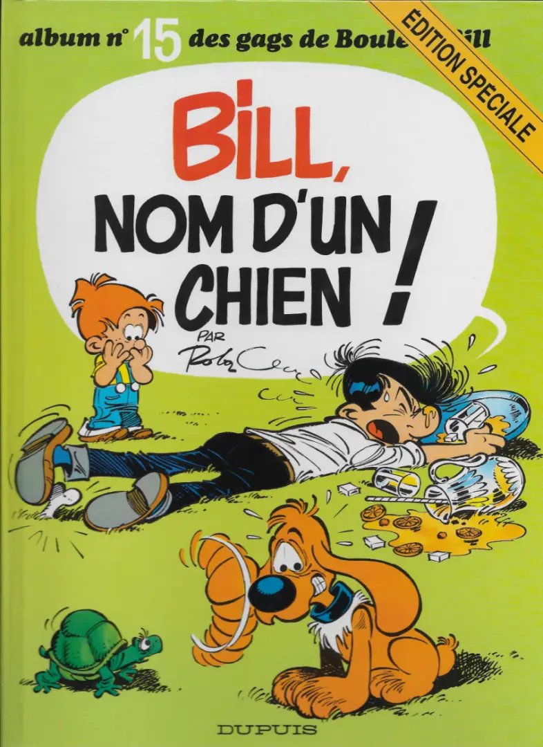 Bill, nom d’un chien ! est le volume 20 de la série Boule & Bill par Jean Roba, paru en 1977. Selon nos informations, il en existe 12 éditions, dont la principale est éditée par Dargaud en 1977.