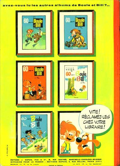 60 gags de Boule et Bill 6 est le volume 6 de la série Boule & Bill par Jean Roba, paru en 1972. Selon nos informations, il en existe 5 éditions, dont la principale est éditée par Dupuis en 1972.
