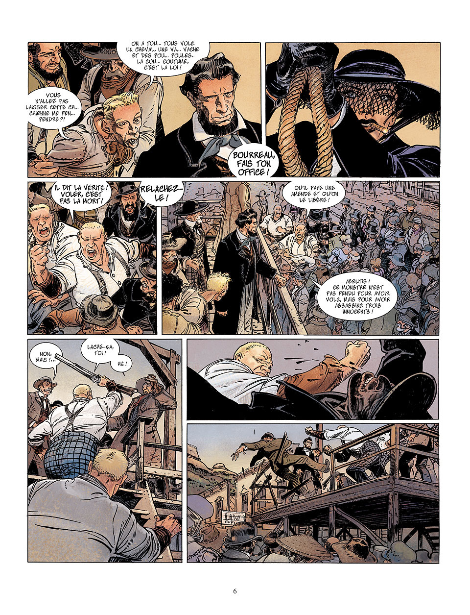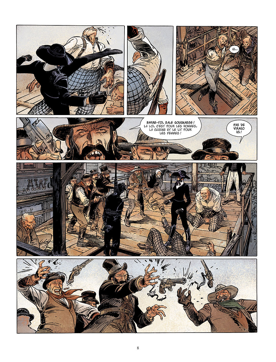 Fin du deuxième cycle.Le tome 5 démarre sur les chapeaux de roue avec un massacre perpétré par trois frères mexicains qui sont des as du coutelas - tandis que la femme bourreau bien mystérieuse derrière son chapeau et son cigare emmènera Bouncer dans de lointains paysages peu recommandables...Drames familiaux qui font penser à la tragédie grecque, combats homériques et spectaculaires qui font penser au film d’action de Hong-Konk et splendeur graphique d’une puissance et d’un expressionnisme rarement atteints dans une bande dessinée : les références de nos auteurs sont donc très actuelles et produisent un western comme on n’en avait pas encore vu...
