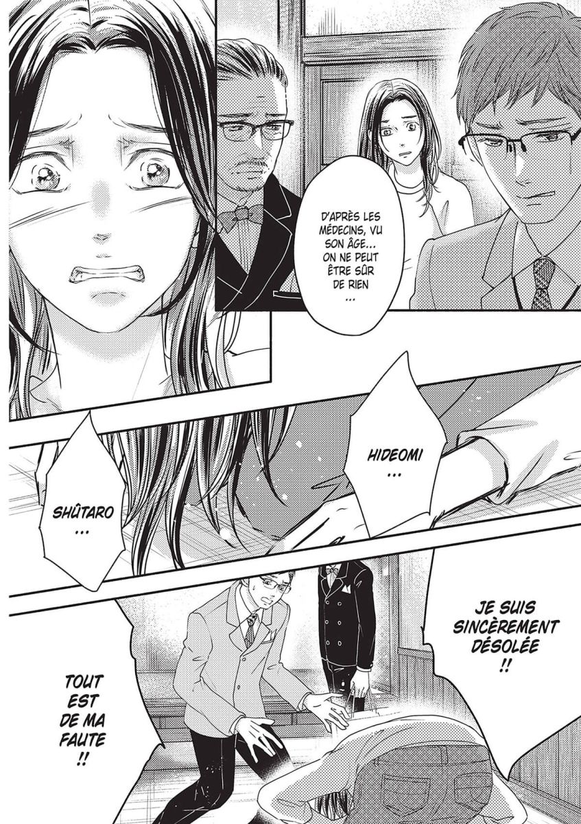 Le piège de Yuriko se referme sur sa belle-fille ! Après avoir goûté aux pâtisseries de Manatsu, le patriarche de la famille Tôjo est victime d’une réaction allergique qui manque de lui coûter la vie ! Yuriko accuse alors la jeune femme de tentative d’assassinat et lui ordonne de couper les ponts avec leur famille. Cette mésaventure séparera-t-elle les deux amants que tout semble opposer ?