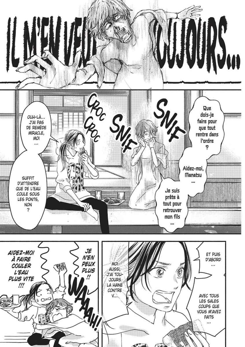 Suite à la main que lui a tendu Manatsu, Yuriko est revenue vivre avec son fils et sa belle-fille. Mais encore choquée par les révélations sur son propre mariage, elle a bien du mal à se remettre sur pied. D’autant que Shûtarô ne l’a toujours pas pardonnée pour son comportement odieux... Heureusement, Manatsu a une idée pour essayer d’apaiser les tensions entre son mari et sa belle-mère !