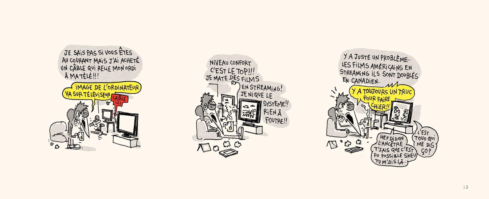 Ah ! si Eric Salch se doutait qu’un jour il recevrait un coup de téléphone de Manu Larcenet pour lui proposer de réaliser une bande dessinée ensemble. Une proposition qui ne se refuse pas mais qui ne s’improvise pas non plus. Eric Salch met sur place des stratagèmes terribles dans le scénario de cette histoire pour contraindre Manu Larcenet dans un Dogme. Le récit ce premier tome est construit sur un échange entre les deux auteurs, chacun se revoyant la balle avec son dessin et son talent.