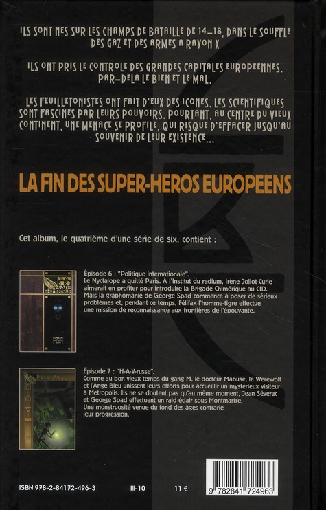 Épisode 6 - Politique internationale : Profitant d’un voyage ultrasecret du Nyctalope à Moscou, Irène persuade Séverac et George Spad de tenter un raid sur la forteresse souterraine du CID pour délivrer Gregor Samsa, alias le Cafard. Mais à Paris, comme dans la capitale des Soviets, le destin a bien des façons de brouiller les cartes. Épisode 7 - H-A-V Russe : Grâce à la miniaturisation de la Chambre ardente, Séverac est désormais capable de mobiliser la Brigade chimérique où et quand il le veut. Y compris au coeur du complexe souterrain du CID. Mais les grottes qui s’étendent sous Montmartre dissimulent bien des monstres et bien des secrets. Et les révélations de Gregor Samsa délivré sur les plans du docteur Mabuse en Europe centrale sont pires encore.