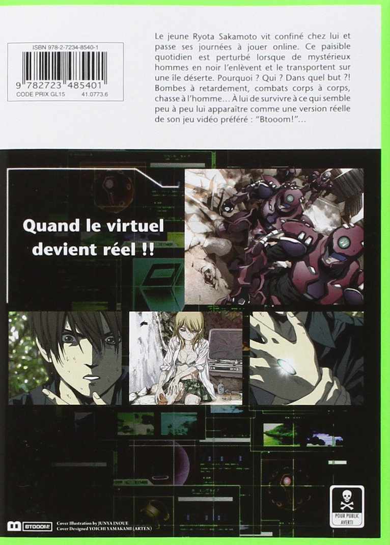 Le jeune Ryota Sakamoto vit confiné chez lui et passe ses journées à jouer online. Ce paisible quotidien est perturbé lorsque de mystérieux hommes en noir l’enlèvent et le transportent sur une île déserte. Le voilà contraint d’employer des bombes pour combattre d’autres participants ! Pourquoi ? Pour qui ? Ce jeu intitulé "Btooom !" présente des caractéristiques identiques à celui sur lequel Ryota passait jusque-là tout son temps !! Bombes à retardement, à fragmentation ou télécommandées, à lui de faire exploser ses adversaires pour pouvoir survivre !! Un jeu d’action sans concession !!PUBLIC AVERTI