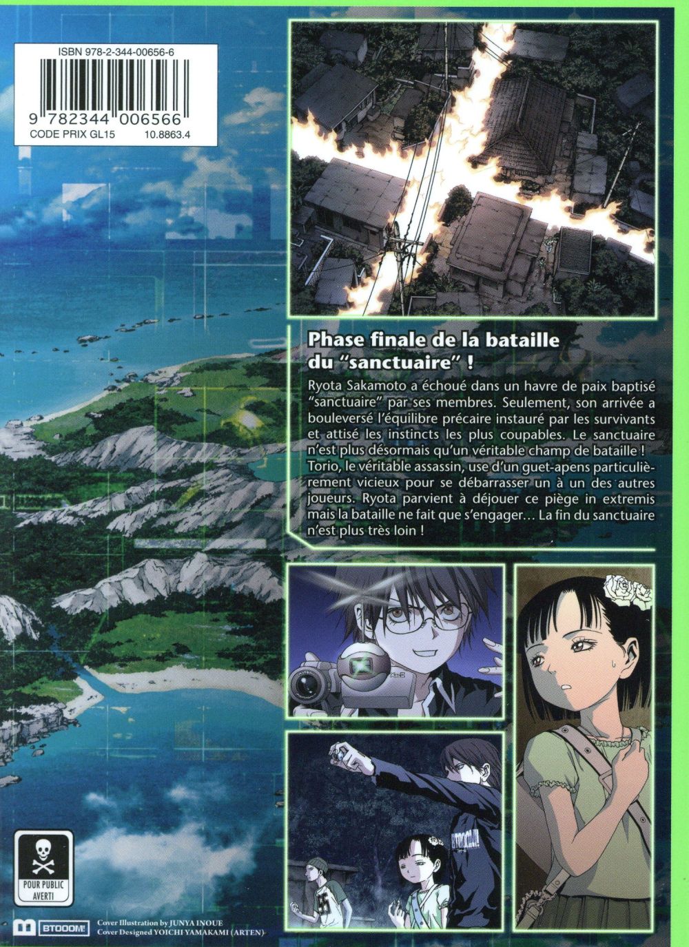 Ryota Sakamoto a échoué dans un havre de paix baptisé "sanctuaire" par ses membres. Seulement, son arrivée a bouleversé l’équilibre précaire instauré par les survivants et attisé les instincts les plus coupables. Le sanctuaire n’est plus désormais qu’un véritable champ de bataille !Torio, le véritable assassin, use d’un guet-apens particulièrement vicieux pour se débarrasser un à un des autres joueurs. Ryota parvient à déjouer ce piège in extremis mais la bataille ne fait que s’engager... La fin du sanctuaire n’est plus très loin !