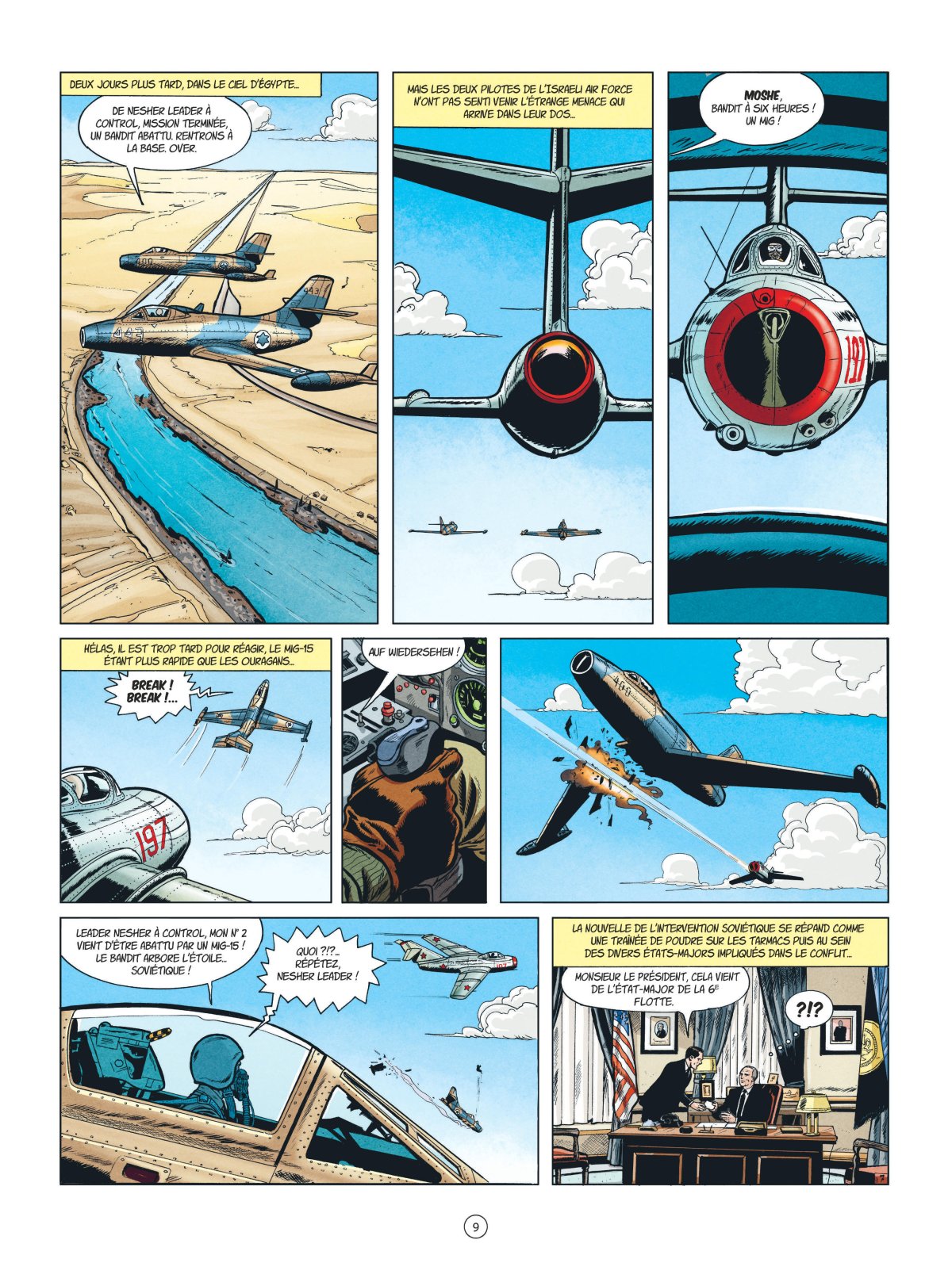 1956. Le canal de Suez est nationalisé par Nasser et devient un enjeu géopolitique. Le porte-avions américain Coral Sea est envoyé pour sécuriser la région. À son bord, Buck et ses amis vont devoir survoler la zone et protéger les ressortissants américains qui doivent fuir. Mais lors d’un vol de reconnaissance, ils sont brutalement attaqués par des chasseurs aux couleurs soviétiques. Est-ce le début de la 3e guerre mondiale ?