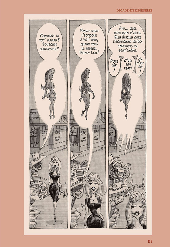 Ce « comic book » se compose de quatre histoires distinctes d’une quarantaine de pages : si deux sont d’hilarantes parodies au vitriol de genres alors en vogue (le polar « jazzy » et le western « névrosé »), Le Cadre supérieur en costard de flanelle grise se livre à une critique acerbe du monde de l’édition commerciale et Décadence dégénérée (lynchage dans une ville du Texas) du racisme américain ordinaire, des thèmes très « adultes » pour les comics de l’époque