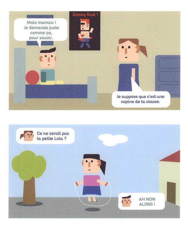- Allez, dis-moi. C’est qui ton amoureuse ? Quand on est parent, on se questionne, on s’inquiète, on aimerait bien savoir ce qui se passe dans la journée de nos enfants. Et quand ils sont amoureux, la curiosité est grande... Qui est l’heureux(se) élu(e) ? Mais les enfants ne nous disent pas tout ! Ils se font un malin plaisir à garder l’essentiel pour eux ! Il n’en reste pas moins que le jeu de devinette reste un moment d’humour et d’échange unique. C’est le cas dans notre histoire. Troisième volet des échanges haut en couleur entre l’enfant de cette famille et ses paprents. Cette fois, c’est la maman qui passe au grill. Et cela commence, comme d’habitude par LA question, avant de dormir. " Comment on sait qu’on est vraiment amoureux ? ". Il n’en fallait pas plus pour aiguiser la curiosité de la maman : "Oh, on dirait que mon petit garçon est amoureux...". La maman s’emballe. Et très vite, il faut savoir qui est l’heureuse élue. L’enfant tente d’expliquer, que non, il n’y a pas d’amoureuse...Mais sa maman fait la sourde oreille et passe les copines en revue. Son fils démonte chacun de ses scénarios et en profite pour avoir des infos sur ses propres parents. Comment ils se sont rencontrés, comment ils se sont séduits...Et évidemment, ce n’est pas non plus ce qu’il imaginait... Finalement, rien à en tirer ! La maman repart sans infos. Mais, là, dans le couloir, c’est le papa qui attend.Il s’engage à obtenir des nouvelles fraîches... Aura-t-il plus de chance ?
