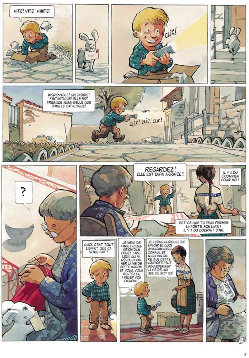 En plein hiver, voila que Soupetard part en Vendée avec sa soeur a lunettes, son lapin Cerfeuil et Maman Servant. Il est content : il va revoir Millemouches, son copain qui ne se lave jamais ? d’ou les mouches. En attendant le train, il tombe en admiration devant une affiche pour les excursions aux îles de l’Océan, avec une petite fille montée sur un âne en culotte a carreaux. Il aimerait bien " excursionner " sur une bestiole comme ça. Mais ce voyage cache quelque chose : son pépé Just est mort et ils vont a l’enterrement. Soupetard prend la nouvelle avec sa philosophie d’enfant (un mystere) et hérite d’un beau cadeau : un coquillage qui ne marche pas. On n’entend pas la mer parce qu’il est bouché. En fait, il y a un truc dedans : la carte d’une île avec des mots écrits en latin et une croix indiquant le camp secret des Indiens. Il en déduit que c’est une carte de l’Amérique latine. Ça tombe bien, Millemouches vient de retaper un rafiot, ils vont pouvoir partir. " Je pars avec MilleMouches. On va en Amérique voir les Indiens. On revien pour dinné. " (Signé Soupetard.)