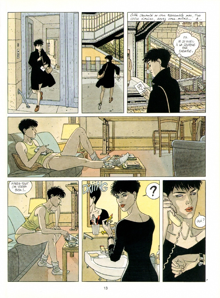 Parce qu’elle n’a pas encore posé de rideaux aux fenêtres de son appartement parisien, Louise Lemoine, jeune et jolie Québécoise, est plongée en plein imbroglio sentimental. En effet, habitant juste en face du métro aérien, elle est aperçue nue, un matin en sortant de sa douche, par deux jeunes hommes qui en tombent instantanément amoureux. Ils vont forcer la chance pour la revoir, tout faire pour la conquérir et inévitablement s’affronter... Tragédie sentimentale aux rebondissements multiples et à la narration très efficace, "Le cahier bleu" est un des grands succès de Juillard. Casterman le réédite en grand format, dans la collection "Un Monde". Un cahier de 8 pages de croquis inédits de l’auteur termine l’album. Le cahier bleu a obtenu, en 1995, l’Alph-art du meilleur album à Angoulême, le Prix Spécial du Jury au festival de Sierre, ainsi que le 1er Prix du Festival de Charleroi.