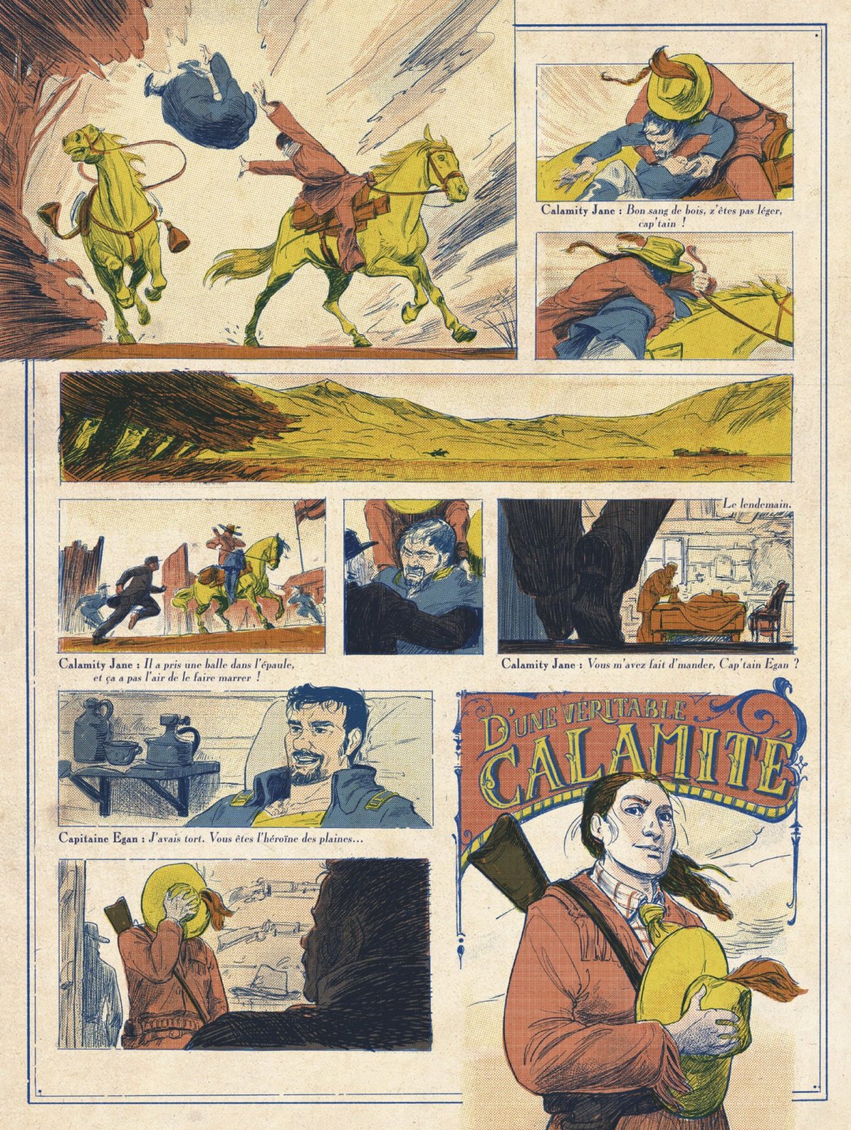 Lorsqu’elle arrive à Deadwood en juillet 1876, Martha Jane Cannary est déjà connue par son surnom de « Calamity Jane ». Comme à son habitude, l’aventurière vit au jour le jour, boit sans retenue et raconte ses exploits, réels ou fictifs, à qui veut bien lui offrir un verre. Ayant connu une enfance misérable dans le Missouri au milieu du XIXe siècle, elle a bâti son mythe de son vivant : celui d’une femme libre se moquant des convenances sociales dans un monde d’hommes. Tantôt cuisinière et lingère dans la maison close de son amie Dora DuFran, conductrice d’attelages ou encore infirmière lors d’une épidémie de variole, elle fascine par son excentricité, son franc parler et son courage autant qu’elle dérange et fait scandale. Et face à l’adversité, elle demeure fidèle à elle-même : une femme au grand coeur, éprise de liberté, qui n’hésite pas à venir en aide aux déshérités et aux souffreteux, ce qui lui vaut un autre surnom, celui de "ange de la miséricorde".