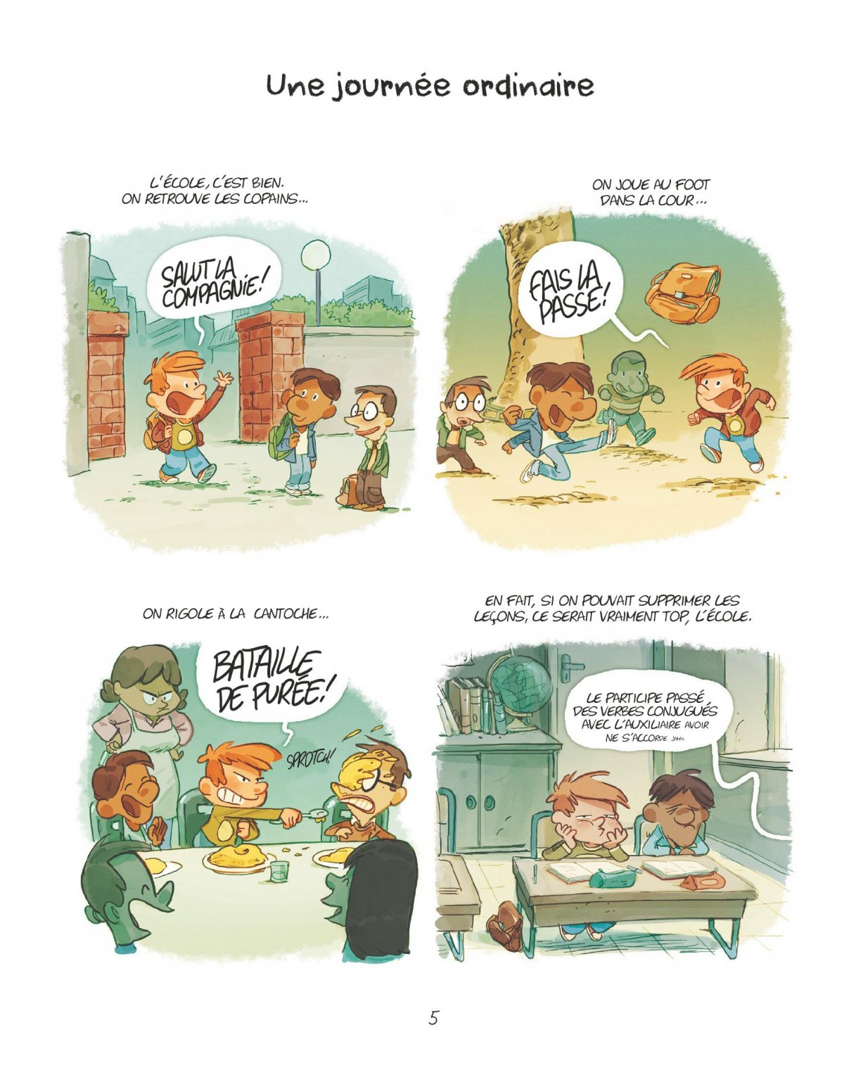 Tous les enfants, aux cheveux blonds ou blancs, connaissent l’univers de la cantine. Les gags de ce tome 2 continuent de surfer sur ces moments de joie intense (la pause repas, enfi n !) ou de grosse déception (nooon... encore purée-saucisse ?!)