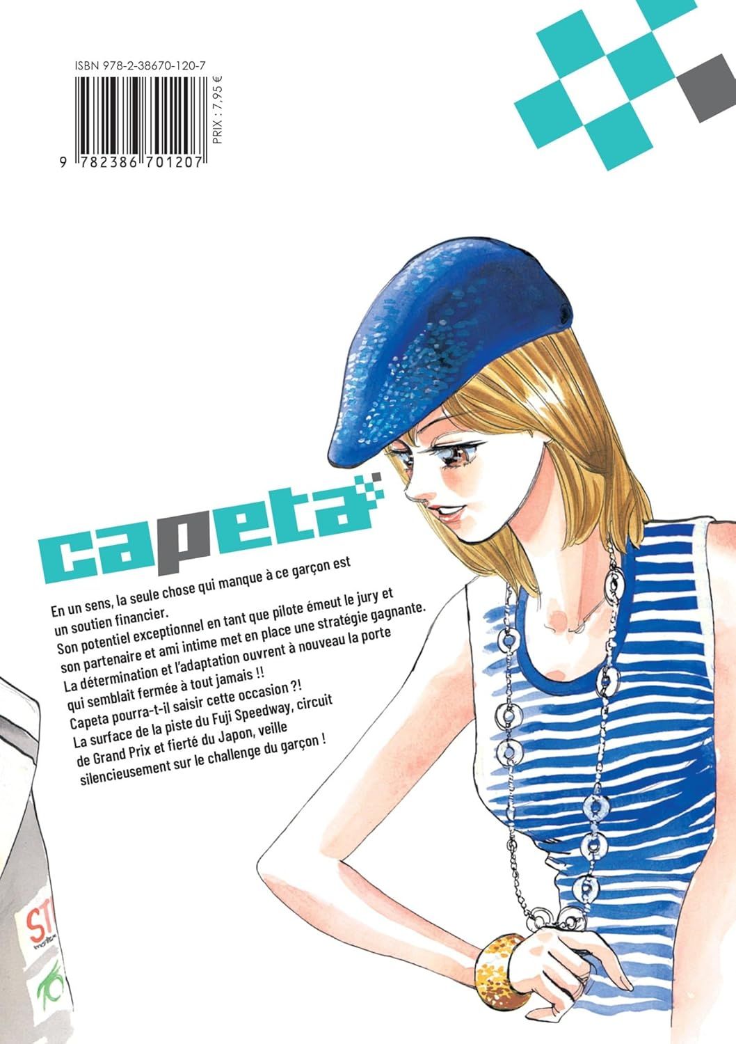 En un sens, la seule chose qui manque à ce garçon est un soutien financier. Son potentiel exceptionnel en tant que pilote émeut les jurées et son partenaire et ami intime met en place une stratégie gagnante. La détermination et l’adaptation ouvrent à nouveau la porte qui semblait fermée à tout jamais !! Capeta pourra-t-il saisir cette occasion ?! La surface de la piste du Fuji Speedway, circuit de Grand Prix et fierté du Japon, veille silencieusement sur le challenge du garçon !
