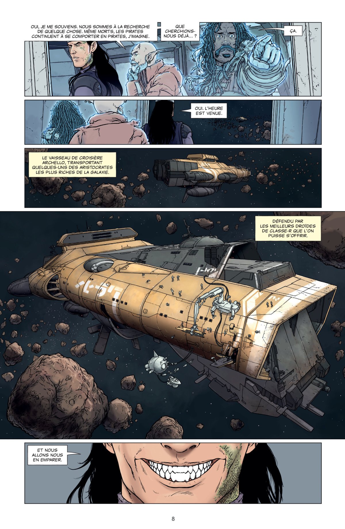 À bord de son vaisseau pirate, entouré des fantômes de son équipage disparu, le capitaine Kaïmann cherche à se délivrer de la malédiction qui le transforme lentement en reptile. Alors qu’il parcourt l’univers à la recherche d’un remède contre sa mutation, il trouve l’amour auprès de la mystérieuse Aurora, une femme toute droit venue d’un futur condamné à une destruction quasi-certaine.
