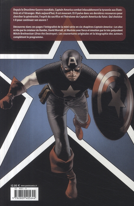 L’élu, la mini-série proposée en intégralité dans cet album, s’inscrit dans la lignée des aventures telles que Punisher - La Fin, qui envisagent les derniers jours d’un héros. Dans le présent ouvrage, les effets du sérum ayant fait de Steve Rogers Captain America, commencent à s’estomper, il doit donc se trouver un successeur. C’est le romancier David Morell, le créateur de Rambo, qui invite le lecteur à s’interroger sur le rôle des personnages symboliques pour une nation. Au dessin, Mitch Breitweiser, un nouveau venu qui a déjà fait parler de lui avec la superbe mini-série Drax