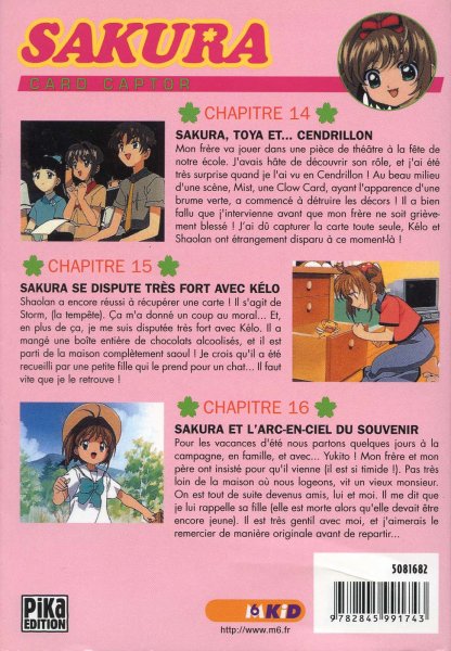 Mon frère va jouer dans une pièce de théâtre à la fête de notre école. J’avais hâte de découvrir son rôle, et j’ai été très surprise quand je l’ai vu en Cendrillon ! Au beau milieu d’une scène, Mist, une Clow Card, ayant l’apparence d’une brume verte, a commencé à détruire les décors ! Il a bien fallu que j’intervienne avant que mon frère ne soit grièvement blessé ! J’ai dû capturer la carte toute seule, Kélo et Shaolan ont étrangement disparu à ce moment-là !