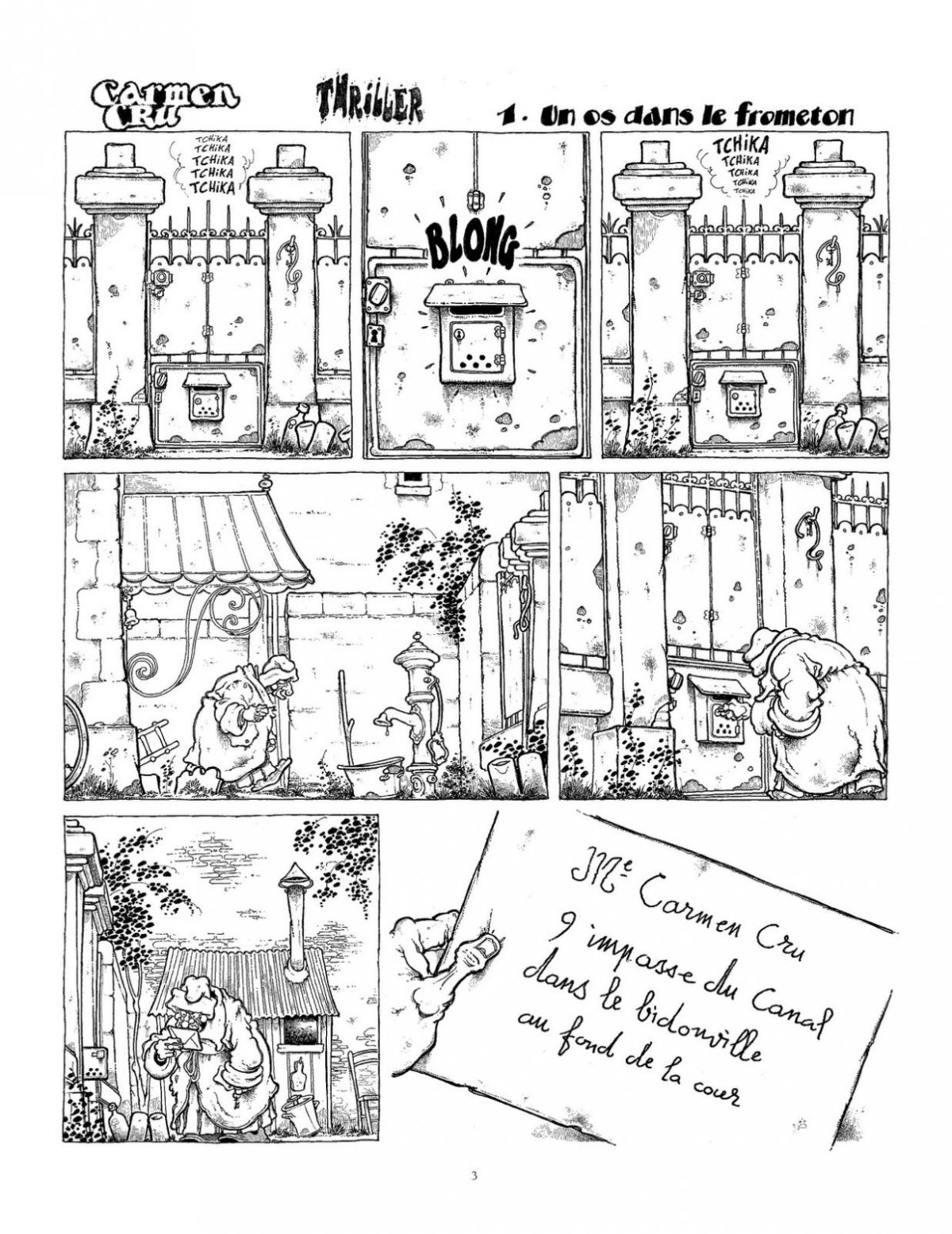 Toujours aussi fraîche dans son grand âge, toujours disponible pour râler, se plaindre et toujours adepte de la riposte préventive aux attaques de ses congénères, Carmen Cru, son vélo grinçant, son cabas surchargé uniquement pour casser le dos des bonnes âmes qui voudront bien lui porter et son haleine de Fernet-Branca reviennent en force dans des aventures inédites et étonnement... carmen-crutiennes !