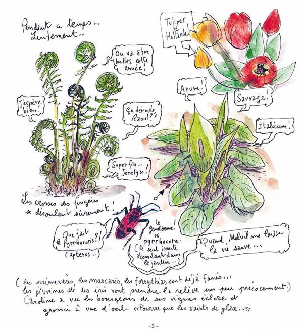 Au fil des mois et des saisons, Fred Bernard scrute, dessine et commente la fourmillante vie de son jardin : fleurs, arbres, batraciens, insectes, oiseaux ... et leurs interactions dans cet écosystème miniature. Avec ses aquarelles prises sur le vif et ses notes précises et documentées (mais non dénuées d’humour), Fred Bernard se fait tout à la fois entomologiste, naturaliste, zoologue... et jardinier patient, curieux et aimant les expérimentations. Profiter de la terre fertile, porter attention à la lumière, aux couleurs, à la chaleur, organiser et prévoir ... l’art de jardiner est complet