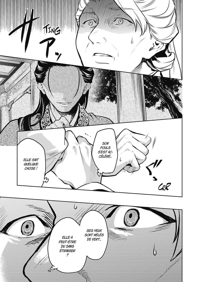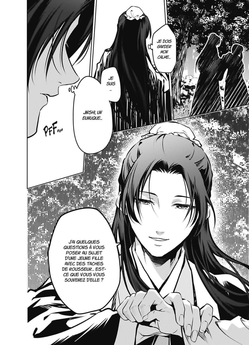 La disparition soudaine de Mao Mao met les nerfs de Jinshi à rude épreuve... Il se lance alors sur ses traces, avec la précieuse aide de Luomen. Il découvre que ce n’est pas la seule personne à s’être volatilisée : Shisui et l’un des nouveaux eunuques manquent également à l’appel !