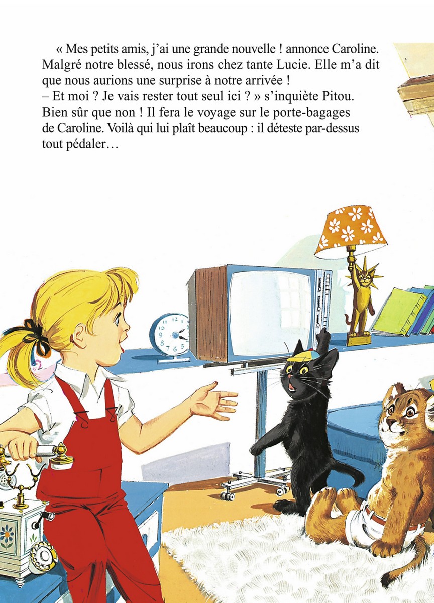 Caroline et ses amis devaient partir en randonnée à bicyclette. Mais Pitou s’est fait une entorse. Il ne peut plus bouger. À cause de lui, tout le monde va devoir rester à la maison… Heureusement, Caroline a une idée… et les voilà bientôt chantant tous sur les routes !