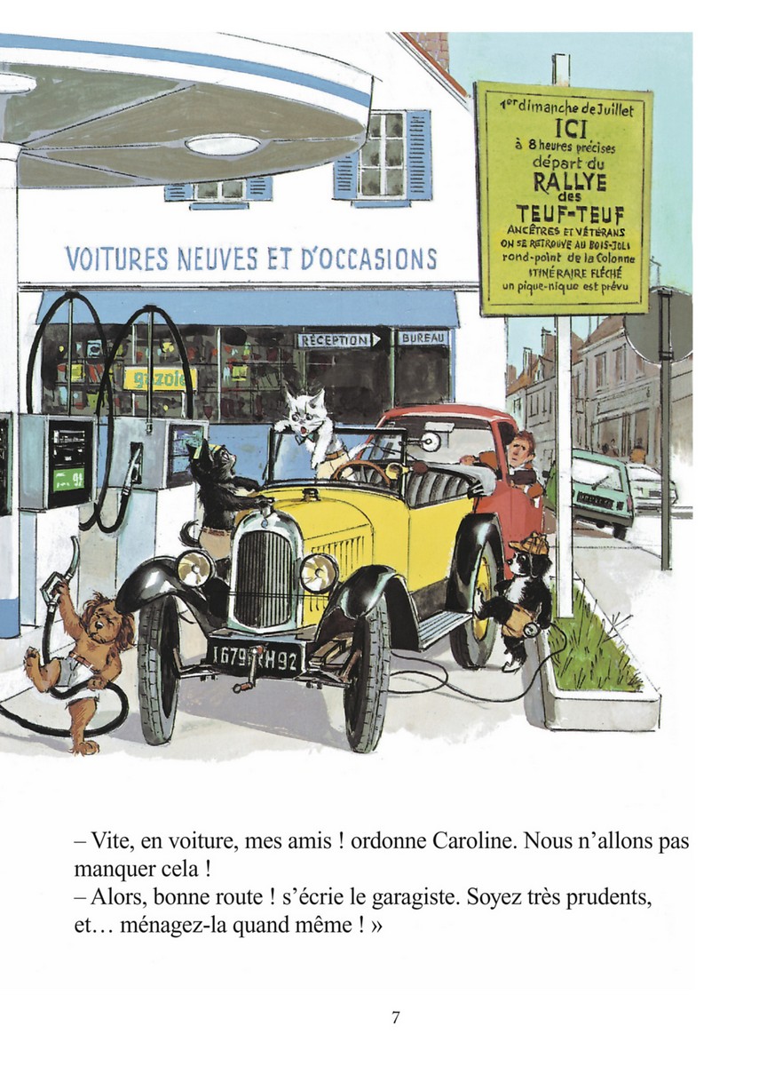 Caroline vient de récupérer chez le garagiste sa fidèle petite auto jaune belle comme si elle était toute neuve ! Quelle chance ! Justement, on organise bientôt un rallye des teuf-teuf dans les environs. Caroline ne voudrait le manquer pour rien au monde. Allez, en voiture, les amis !