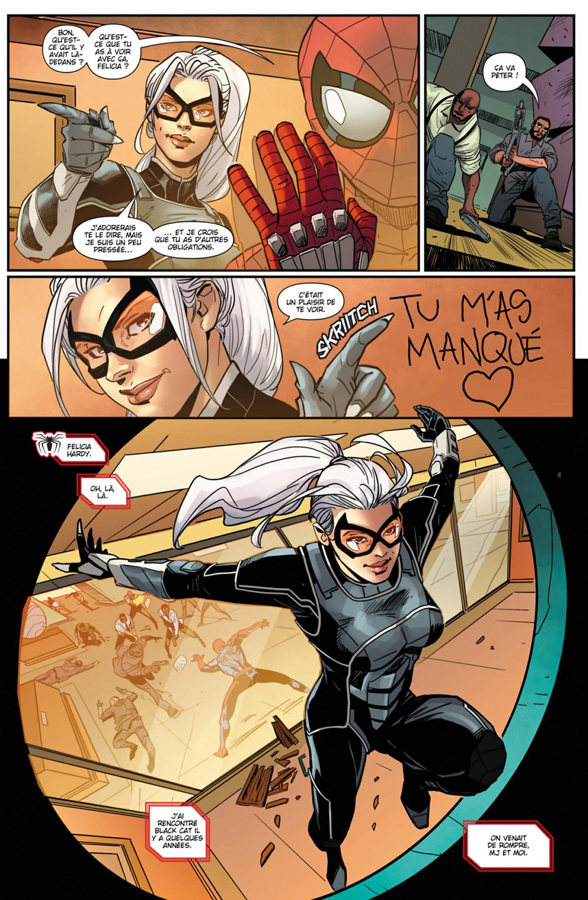 Place à la Chatte Noire ! Alors que le Spider-Man de l’univers du jeu vidéo Playstation 4 se démène face à Hammerhead et à la Maggia, la belle Felicia Hardy réapparaît pour bousculer sa petite vie tranquille. La Chatte Noire semble avoir renoncé à l’héroïsme pour redevenir voleuse à plein temps, mais quel secret recèle les trésors après lesquels elle court ? Il va bien falloir que notre Spidey s’intéresse à cette histoire, mais cela peut-il se faire sans provoquer la jalousie de Mary Jane ?