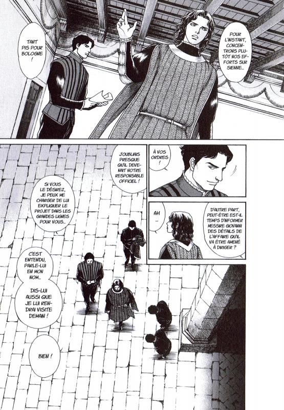 Mais celui-ci quitte la ville pour Florence, où il doit rencontrer Lorenzo de Médicis. Les deux familles ont en effet un objectif commun : stabiliser la situation à Pise et faire en sorte que Giovanni devienne enfin cardinal. pour y parvenir, Cesare encourage le grand banquier à se réconcilier avec Raffael Riario en collaborant à la création d’une manufacture de textiles...