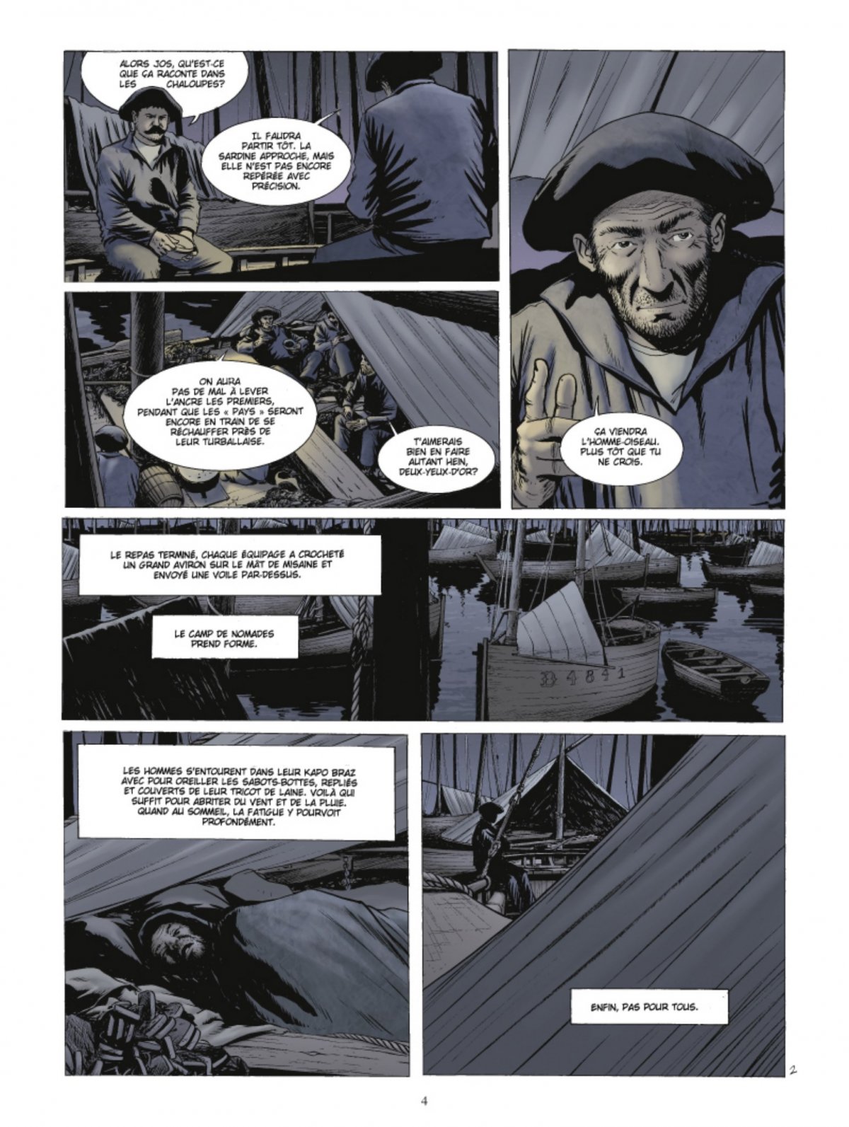 1913. Jos Gloaguen a mûri, son oncle Guillaume le nomme capitaine de L’Ami-du-Travail. Du fait de ce nouveau statut, les femmes commencent à lui tourner autour et l’une d’entre elle, Anna Coëdic, parvient rapidement à lui faire oublier Denise, son amour de jeunesse promise à un autre. Mais ce bonheur sera de courte durée : la guerre est déclarée et Jos est enrôlé à Brest sur le cuirassé le Danton. À bord, il découvre un monde totalement différent de celui de L’Ami-du-Travail. Un monde de vaines routines, où le seul objectif est de faire flotter un bateau et de le maintenir en état de propreté.Dans ce troisième tome, François Debois montre une autre facette de l’héroïsme ordinaire de ces pêcheurs à la vie rude en s’intéressant à l’une des périodes noires de l’Histoire : la Première Guerre mondiale. Serge Fino donne crédit et vie à ces Bretons de la mer, inscrivant Les Chasseurs d’écume dans la lignée des grands feuilletons historiques et familiaux, comme Les Maîtres de l’orge.