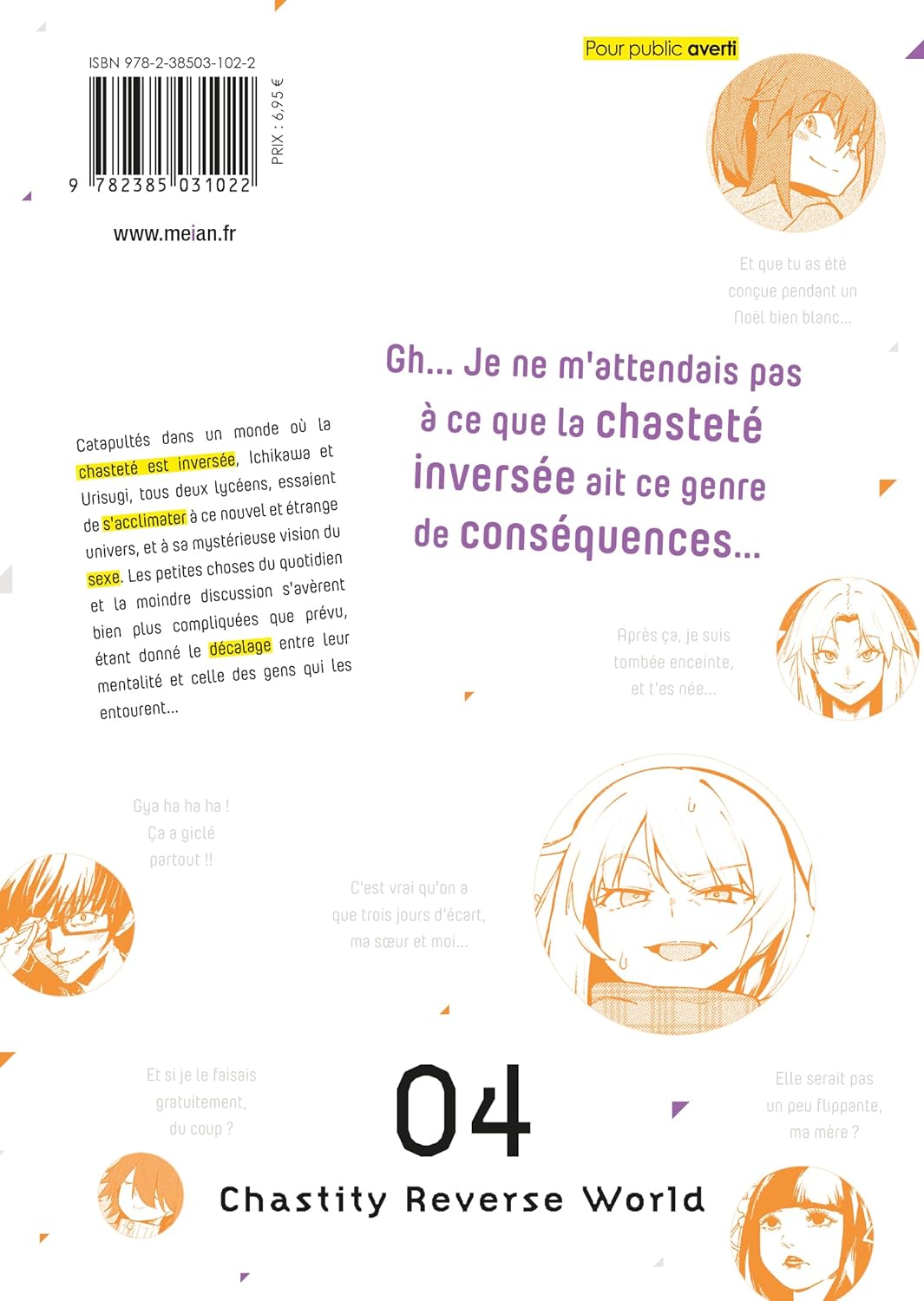 Gh... Je ne m’attendais pas à ce que la chasteté inversée ait ce genre de conséquences...Catapultés dans un monde où la chasteté est inversée, Ichikawa et Urisugi, tous deux lycéens, essaient de s’acclimater à ce nouvel et étrange univers, et à sa mystérieuse vision du sexe. Les petites choses du quotidien et la moindre discussion s’avèrent bien plus compliquées que prévu, étant donné le décalage entre leur mentalité et celle des gens qui les entourent...