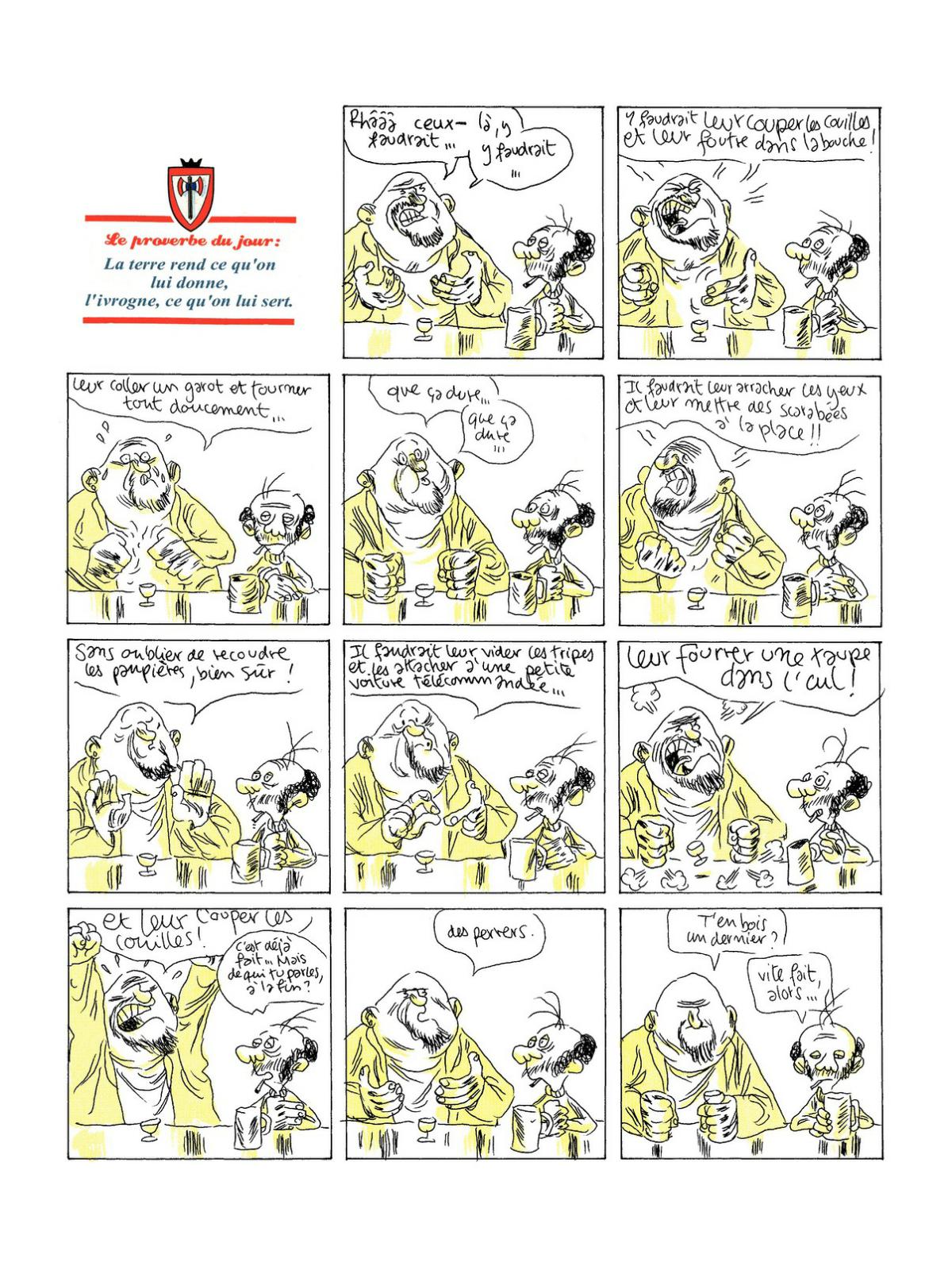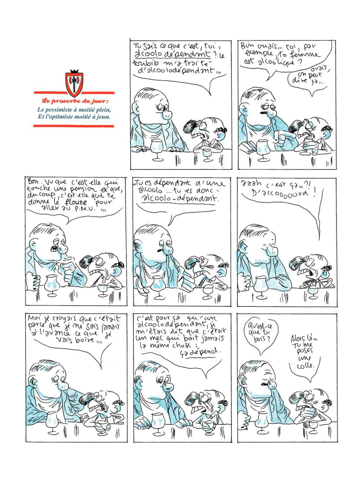 Le recueil des brèves de comptoir recueillies au troquet Chez Francisque : des blagues douteuses et trash et des dialogues navrants de racistes, phallocrates et homophobes pathétiques qui, à force d’être ridicules, font rire d’eux.