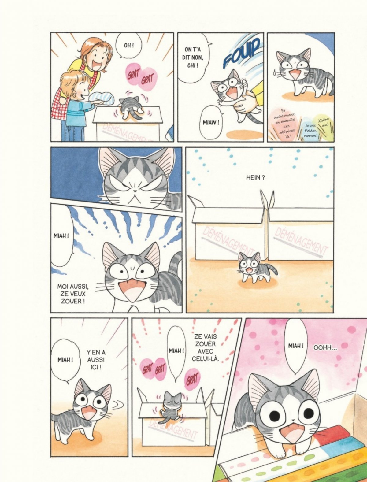 Pas facile tous les jours, la vie de chaton ! Les meilleures promenades se terminent parfois mal, maman vous oblige à prendre des bains et papa ne vous offre pas le poisson rouge que vous convoitez ! Heureusement, il reste toujours de délicieux aliments à découvrir, de nouvelles bêtises à inventer et tout un monde à explorer...Les expériences, bonnes et mauvaises, aident à grandir et rendent malgré tout la vie de chat pleine de joies et de surprises.Et avec Chi, elle l’est encore plus !Miaaaa...
