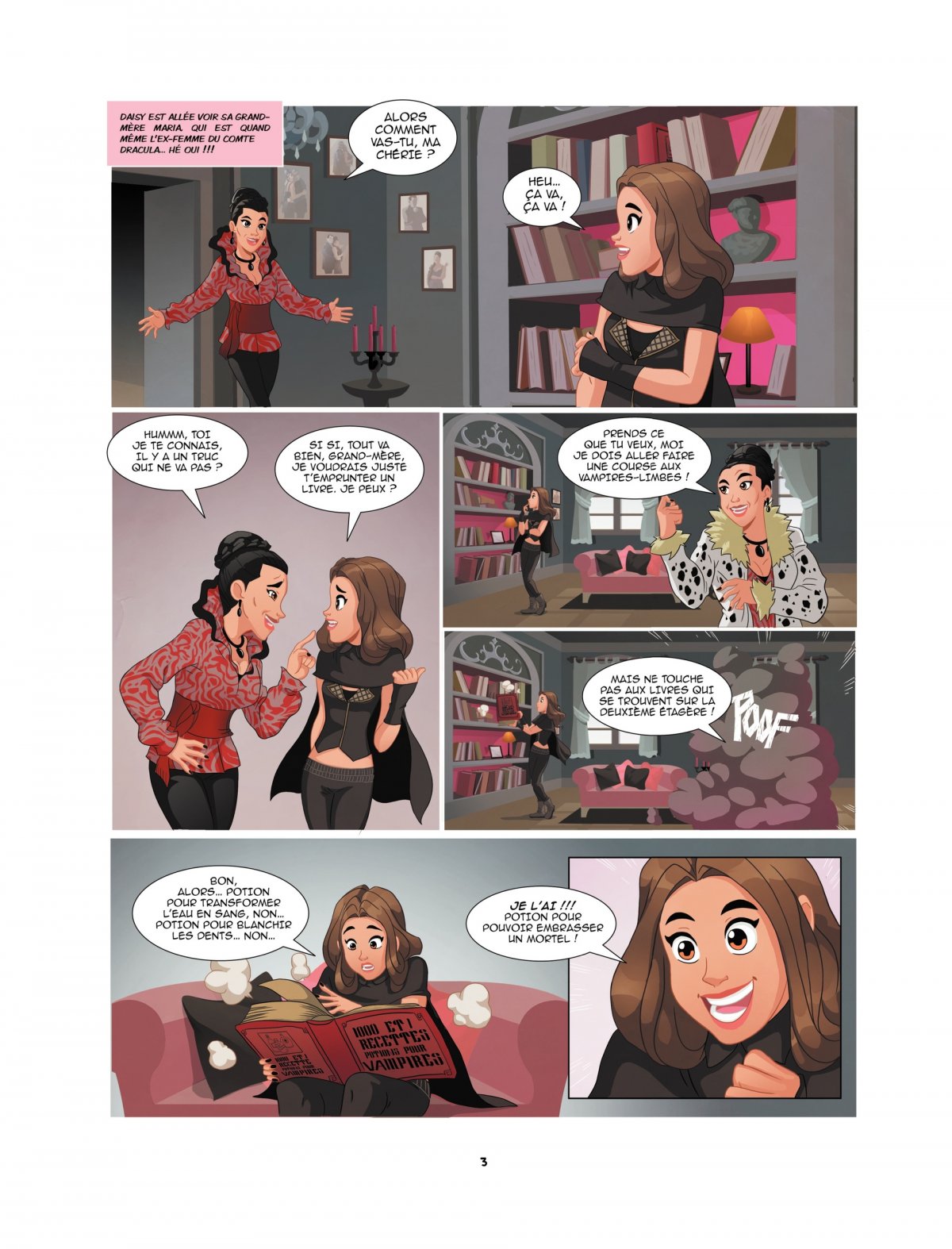Daisy est un vampire et ce n’est pas facile d’avoir un amoureux mortel ! Comment l’embrasser sans avoir peur de le mordre ? Lucie, la meilleure amie de Daisy trouvera un stratagème : concocter une potion aux vertus magiques… Mais attention aux effets secondaires
