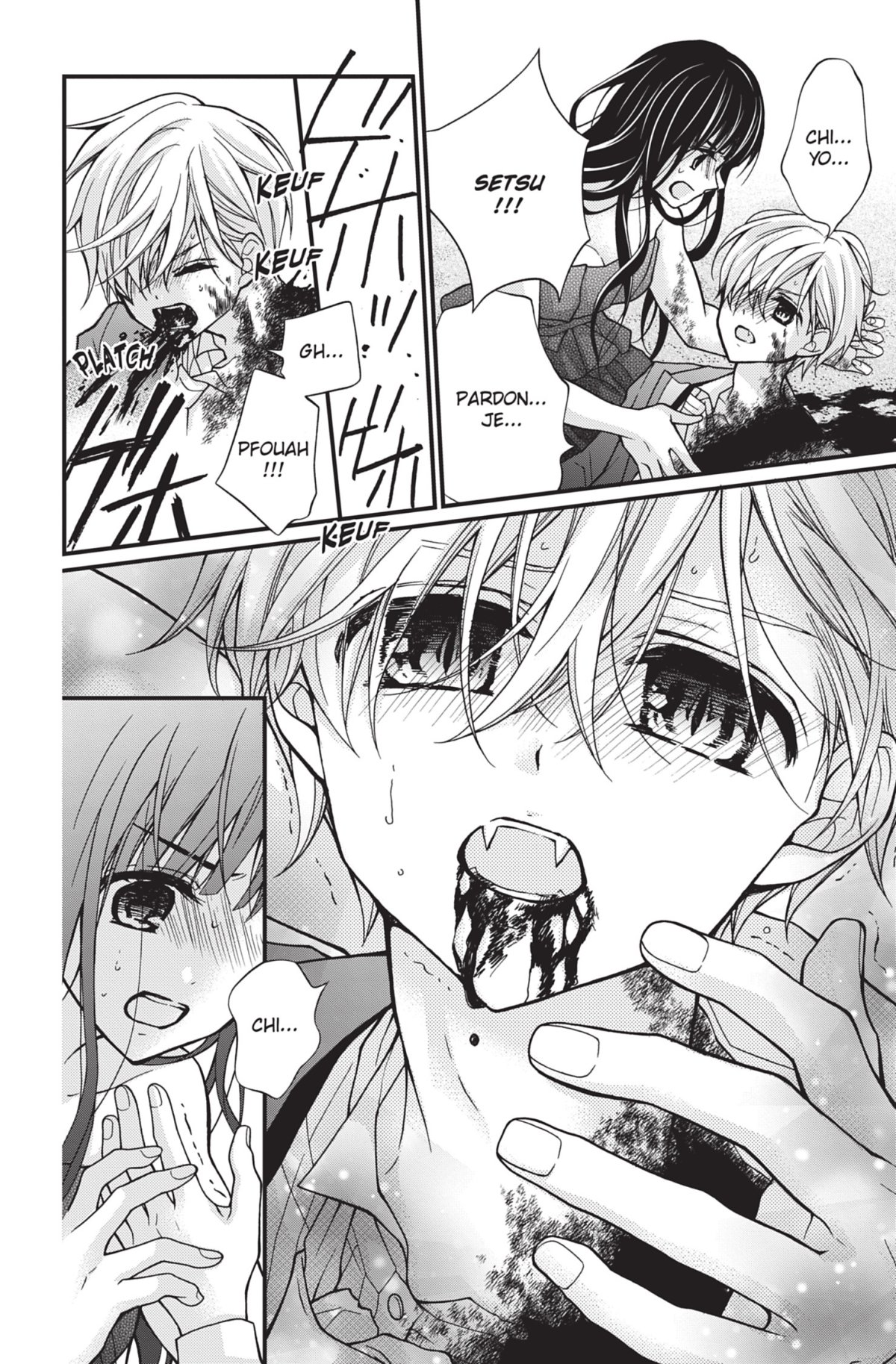 Setsu est entre la vie et la mort... Le ciel s’apprête à reprendre à Chiyo l’homme qu’elle aime... Chiyo apprivoise peu à peu ses nouveaux pouvoirs de " Dhampire ", une race bien plus puissante que les humains. C’est la raison pour laquelle les vampires du monde entier tentent de l’éliminer ainsi que ceux qui la protègent, la famille Kagarizuki. En faisant face au maître des Shiragane, Setsu est grièvement blessé. Chiyo tente alors de le sauver au péril de sa vie, mais leur pacte se rompt subitement. Est-ce le signe qu’il est sur le point de perdre la vie ?