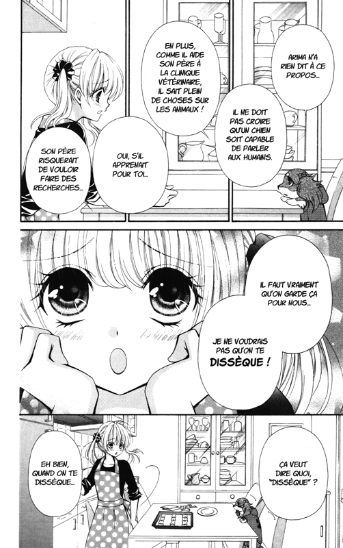 Toujours aussi imprévisible, la bavarde Chocotan se retrouve dans une situation périlleuse avec Arima, l’élu du coeur de Nao. Pour l’aider, une seule solution : appeler à l’aide, et révéler ainsi son secret ! Mais Arima s’avèrera être un véritable allié pour Nao et sa chienne, et les deux jeunes vont se rapprocher grâce à cela. Chocotan rencontre Milou, la vieille chienne d’Arima, mais également une jeune femme qui va la ramener chez elle en la confondant avec un autre chien ! La petite teckel arrivera-telle à se sortir de la situation sans utiliser la parole ?