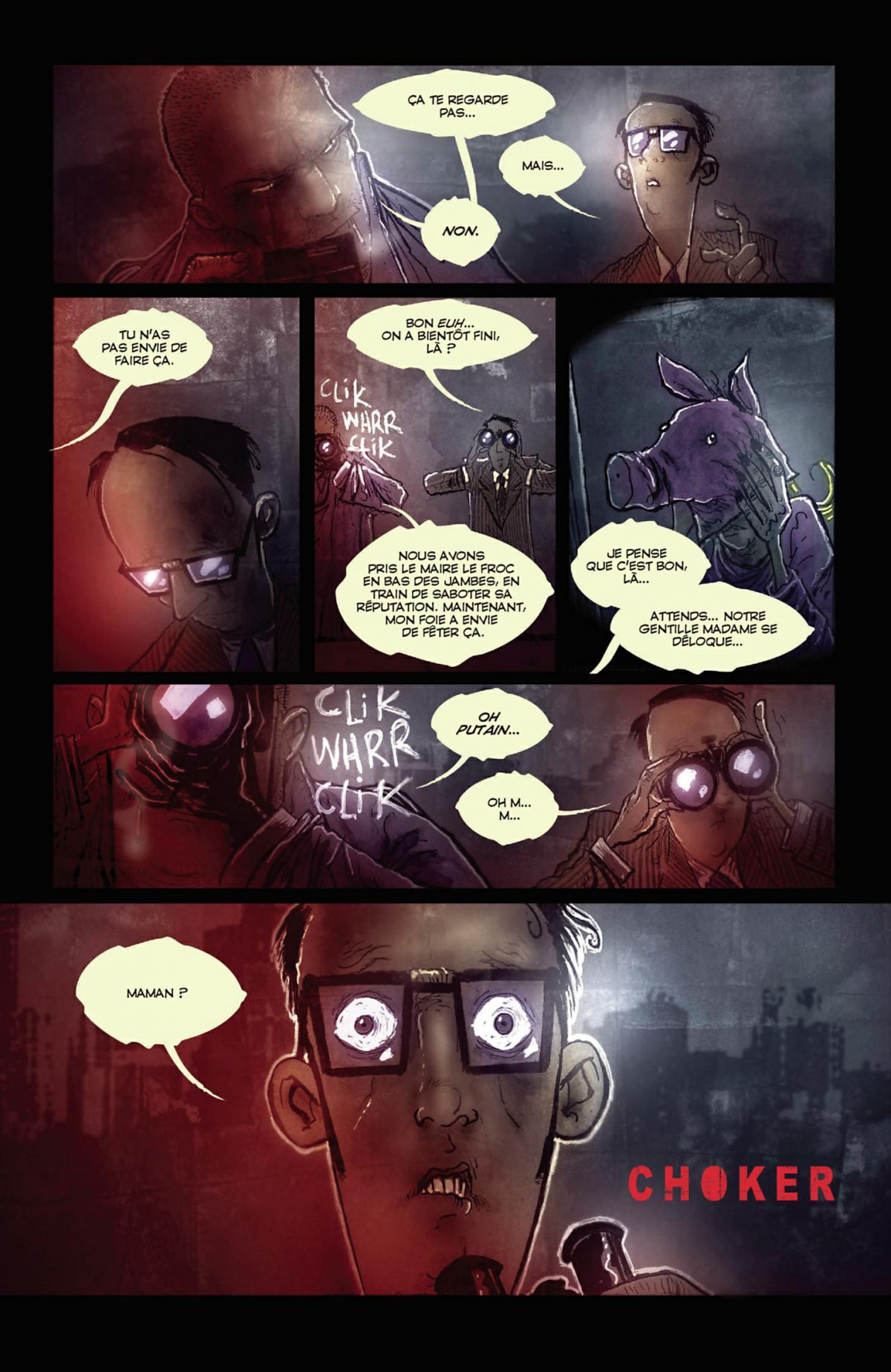 Choker est un album oneshot de Ben McCool et Ben Templesmith, paru en 2012. Selon nos informations, il n'en existe qu'une seule édition, publiée par Delcourt.