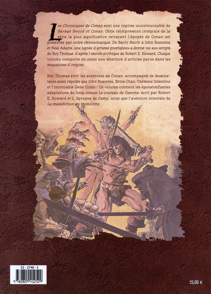 Ce volume contient les époustouflantes adaptations du long roman Le couteau de flamme, écrit par Robert E. Howard et L. Sprague de Camp, ainsi que l’aventure orientale de La malédiction du monolithe.