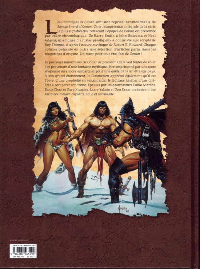 Le parcours tumultueux de Conan se poursuit. On le voit tenter de voler l’or provenant d’une fontaine mythique, être emprisonné par une secte stygienne ou encore embarquer pour une quête dans un étrange pays. A son grand étonnement, le Cimmérien apprend également qu’il est l’objet d’une prophétie en venant aider le légitime héritier d’une cité-Etat à récupérer son trône. Epaulés par les dessinateurs Pablo Marcos, Ernie Chan et Gary Kwapisz, Larry Yakata et Don Kraar orchestrent des histoires mêlant cupidité, folie et sensualité.