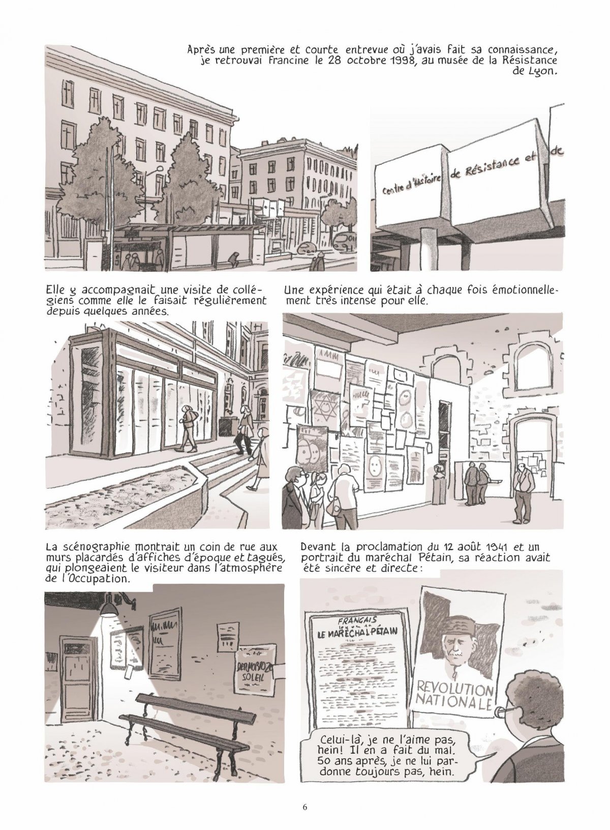 Quand la BD frôle les frontières de l’intime… Francine R. est arrêtée avec sa soeur par la Gestapo à Pouilly-sous-Charlieu, dans la Loire, le 6 avril 1944, pour les faits de résistance de leur frère Joannès. De là, elles partiront dans un convoi de femmes puis elles seront séparées : sa soeur expédiée en camps de travail à Hanovre ; Francine à celui de Watenstedt dans les usines d’armement Herman Göring. Tout au long de son parcours, rien ne lui sera épargné : frappes dès son arrestation par la Gestapo, humiliations continues, trajets en train dans un wagon à bestiaux, accueil par des chiens loups sur le quai de la gare du camp de concentration, expérience médicale, déshabillage des morts, pillage des vivants, travail forcé... Mais aussi, la permanence de l’espoir de sortir vivant de cet enfer, la lumière de deux hommes, un français et un algérien croisés à Watenstedt, le sabotage du travail à la chaine, l’émotion à la libération du camp, la première nuit dans un vrai lit, le 14 juillet de la libération à Paris.Francine a évoqué tout cela en détail à Boris Golzio dans un long entretien. Longtemps resté avec cette matière entre les mains, l’auteur décide aujourd’hui de retranscrire cette parole dans un récit de bande dessinée dont le dessin se fait le plus neutre et naïf possible afin de rendre l’horreur supportable. Un récit où le texte n’est composé que par la voix de Francine, dans son langage à elle, brut, fait d’hésitations, de répétitions et de tremblements, afin de respecter la vérité ontologique de ses propos et de rendre compte de la meilleure manière possible ce que fut la vie de cette femme. Une résistante, déportée, parmi des milliers d’autres, mais dont chaque voix, chaque parole est unique et doit être sauvée de l’oubli.